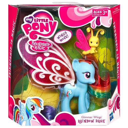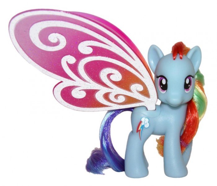 Uroczy Rainbow Dash ma kolorowe skrzydełka które dodają mu uroku i wdzięku. Niebieski kucyk ma też piękną grzywę w kolorach tęczy. Towarzystwa dotrzymuje mu mały żółty ślimaczek z małymi różowymi skrzydełkami, on również chętnie zaprzyjaźni się z każdą małą księżniczką, wielbicielką My Little Pony.