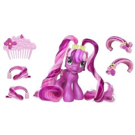 Zrób Cheerilee śliczną fryzurkę! Możesz zmieniać wygląd kucyka doczepiając i czesząc długie pasma włosów! W zestawie znajduje się także grzebień dla kucyka, którym dziewczynki będą mogły dowolnie stylizować fryzurę Cheerilee.