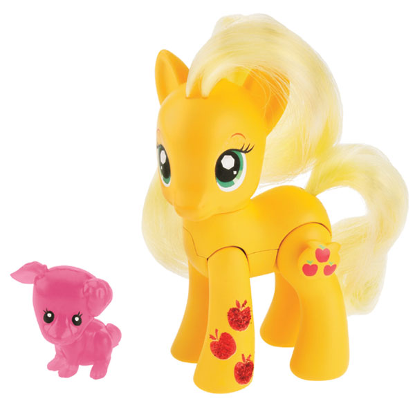 My Little Pony to kucyki ze świata marzeń, z czarodziejskiego świata fantazji. Uwielbiają się bawić, zawsze chętnie służą pomocą i potrafią słuchać jak nikt inny. To właśnie dlatego cieszą się coraz to większą sympatią dziewczynek na całym świecie. Kucyki z serii „Wyjątkowe Kucyki” poruszają się! Po naciśnięciu przycisku Applejack zaczyna ruszać swoimi nóżkami! Dodatkowo kucykowi towarzyszy jego przyjaciel różowy piesek.