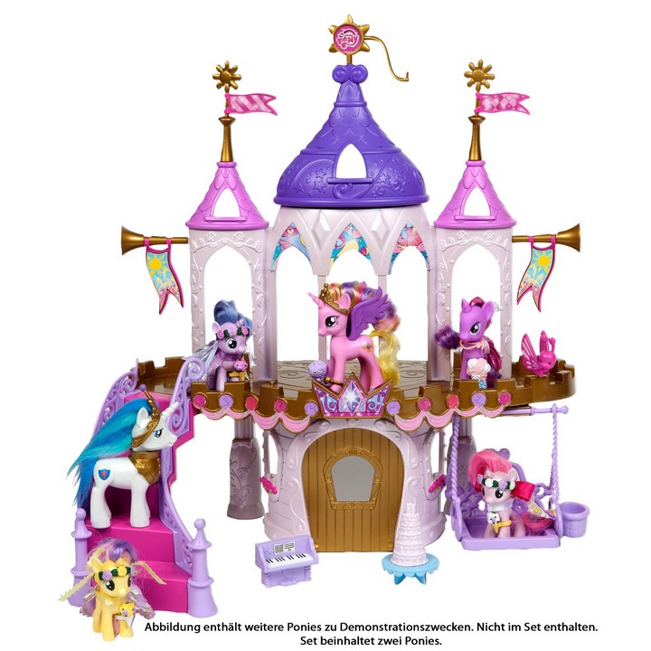 Kucyki we wspaniałym zamku świętują ślub księżniczki Celestii. Przyłącz się do zabawy, zagraj skoczną melodię na pianinie, skosztuj tortu i tańcz całą noc.