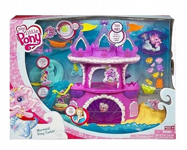 Gdy kucyki pojawiają się nad morzem, w magiczny sposób stają się pięknymi syrenami! Mają do dyspozycji piękny trzy poziomowy pałac z mnóstwem kucykowych atrakcji. Posiadają takie akcesoria jak hamaki i muszle, w których mogą odpocząć. Także przekąski, zabawki do piasku i wody oraz skrzynia pełna skarbów czynią każdą zabawę ciekawszą! Dodatkowo z zestawie dziewczynki znajdą bransoletkę wraz z jedną z 10 morskich zawieszek.