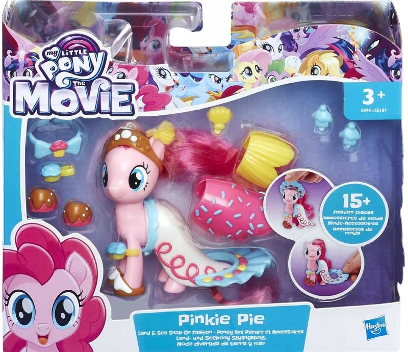 Na lądzie czy pod wodą, Pinkie Pie zawsze ma imprezowy styl. Zainspiruj się filmem My Little Pony i wyobraź sobie, że ta figurka galopuje przez Canterlot i odkrywa magiczne królestwo Seaquestrii wyposażona w modny zestaw akcesoriów.