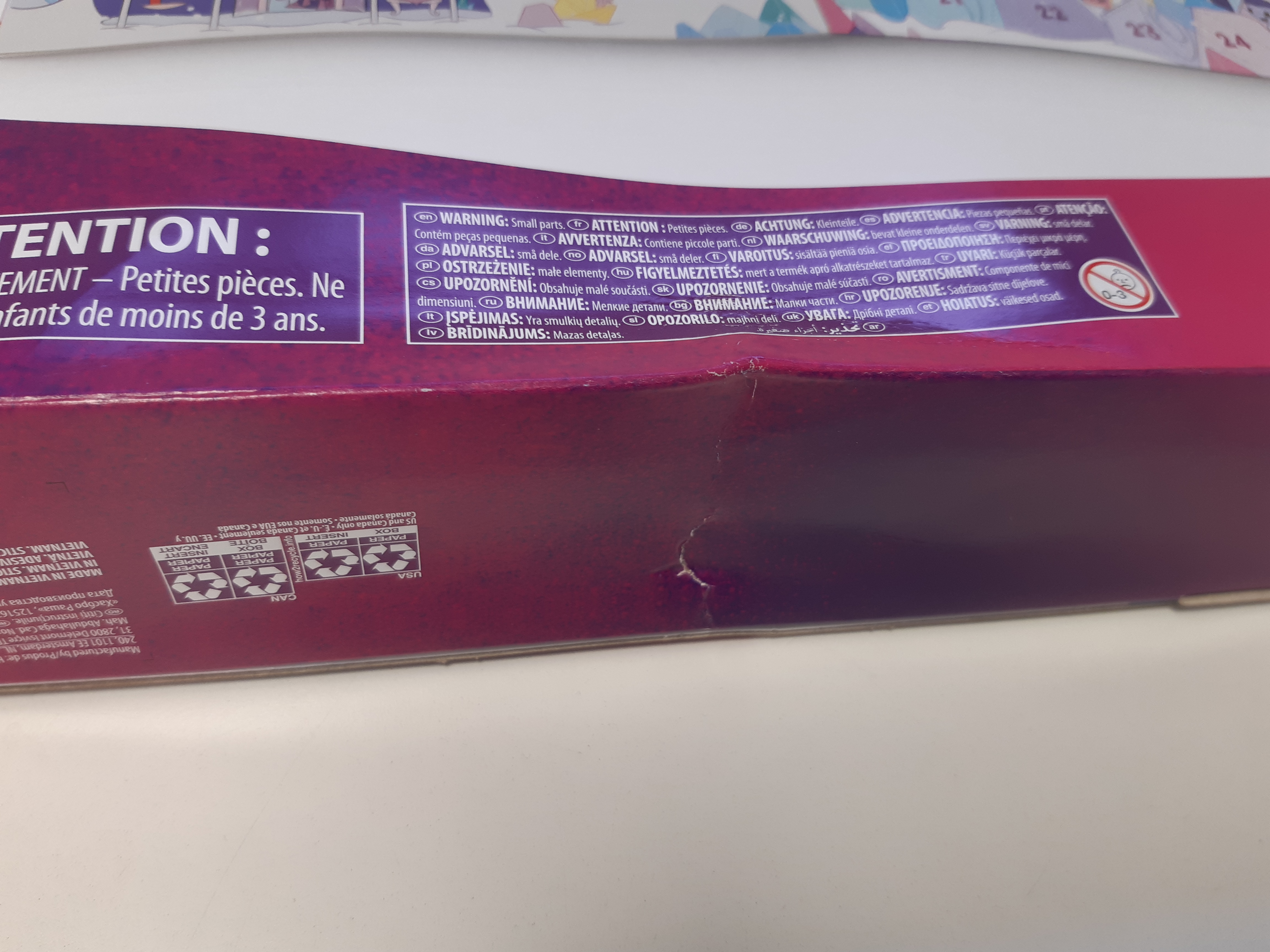Kalendarz adwentowy Snow Party Countdown dla dzieci zawiera 25 kartonowych drzwiczek w kształcie klejnotów, za którymi skrywa się 25 figurek, w tym 16 minifigurek kucyków w uroczej 1,5-calowej skali, 9 zwierzaków z rogami jednorożca, a także 6 naklejek.