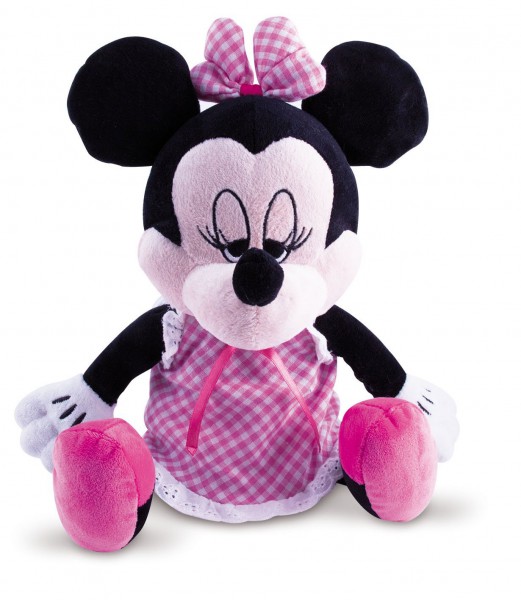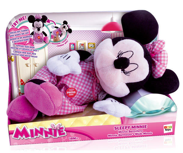 Gotowi na drzemkę z ulubuionymi bohaterami bajek? Pluszowi bohaterowie bajek Disneya z pewnością przypadną do gustu Twojemu dziecku. Żywe zestawienia kolorów przyciągnie jego uwagę. Maskotki z tej serii są bardzo miłe w dotyku, idealna do przytulania, a wykonano je z wysokiej jakości pluszu. Kiedy Myszka Minnie kładzie się spać zaczyna chrapać, kiedy się ją posadzi, budzi się i przeciąga.