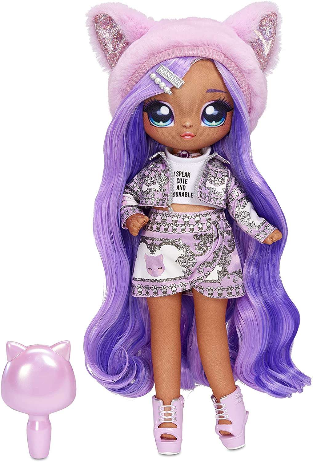 Na! Na! Na! Surprise to kolekcja niezwykłych miękkich laleczek ze ślicznymi kolorowymi włosami, puchatym czapkami i uroczymi dodatkami. Laleczki mają różną osobowość, a ich styl zaczerpnięty jest od uroczych zwierząt. Laleczki mają długie włosy do czesania oraz nadrukowane buzie na tkaninowym ciele. W zestawie znajdziemy aż trzy różne postacie: lalkę Margot Belle, laleczkę Sophie Bellel oraz kotek Bisous.