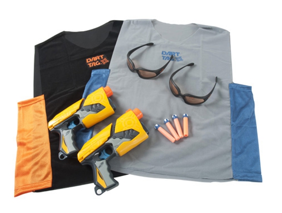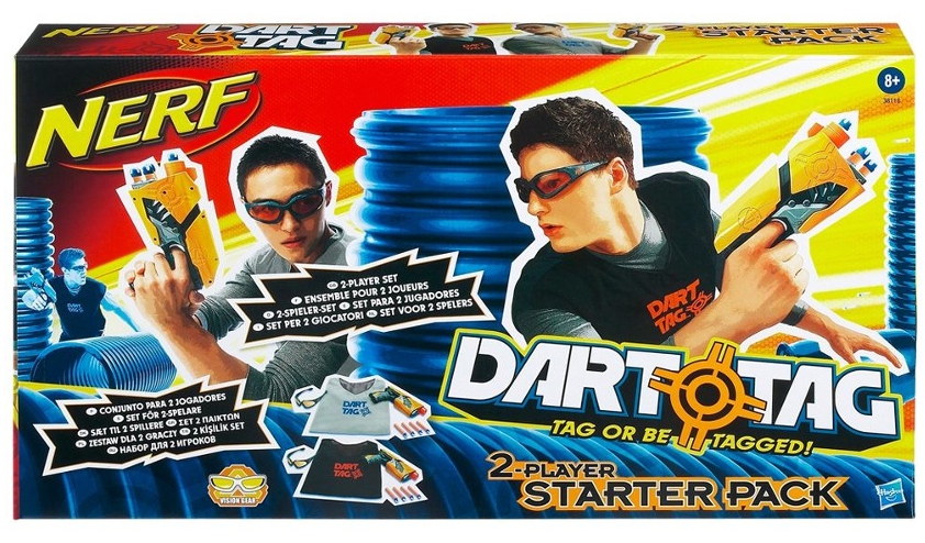 Nerf Dart Tag Starter Pack Dla 2 Graczy 38118 to wspaniały zestaw dla dwójki dzieci do rozpoczęcia zabawy z wyrzutniami Nerf. W zestawie znajdziemy 2 wyrzutnie Sharp Shot, 2 pary okularów ochronnych oraz 2 uniwersalne koszulki nerf w różnych kolorach oraz 8 strzałek typu Dart Tag. Strzałki dołączone do wyrzutni przyczepiają się do swetrów i specjalnych tarcz. Strzałki dodatkowo świszczą w powietrzu.