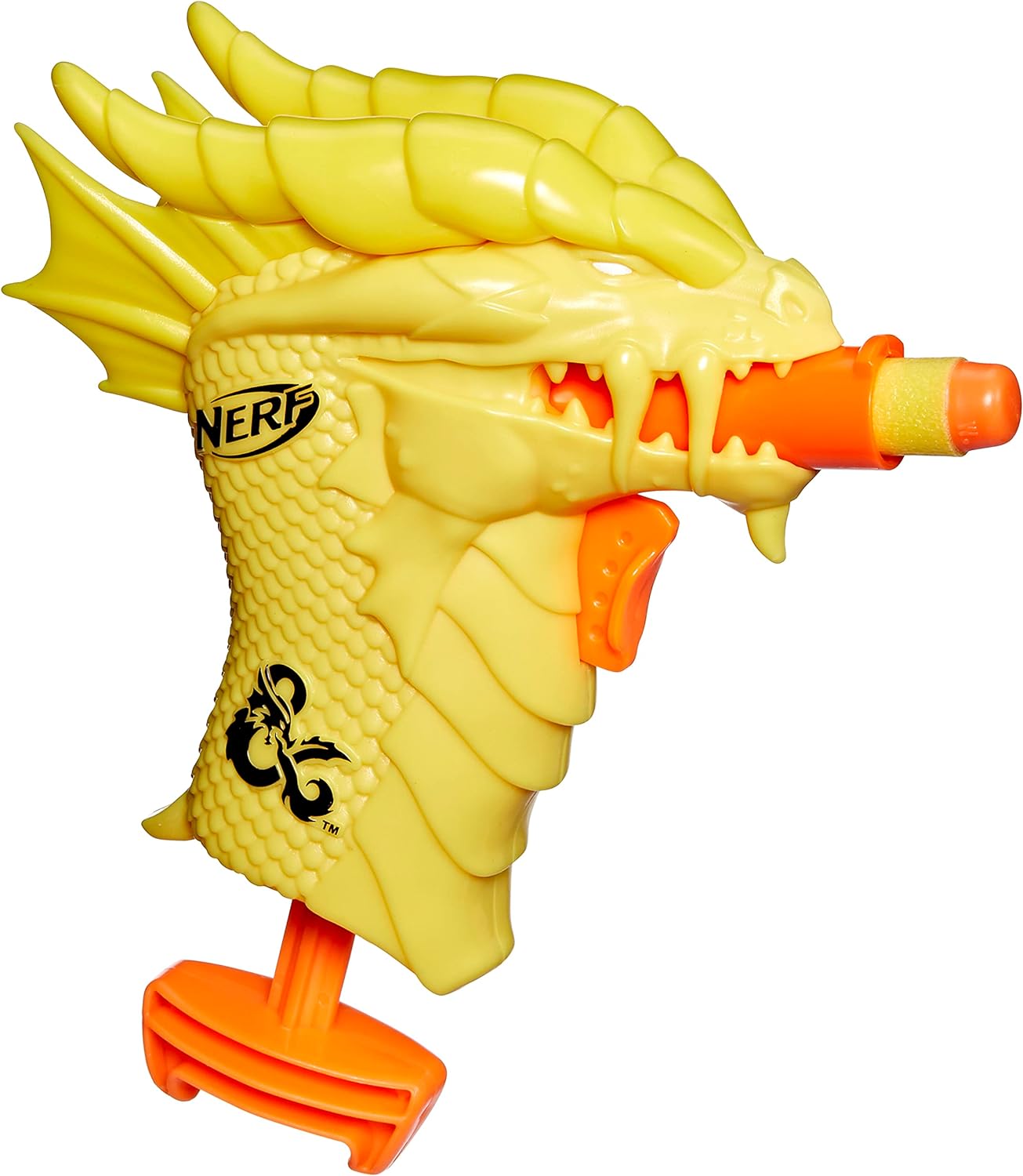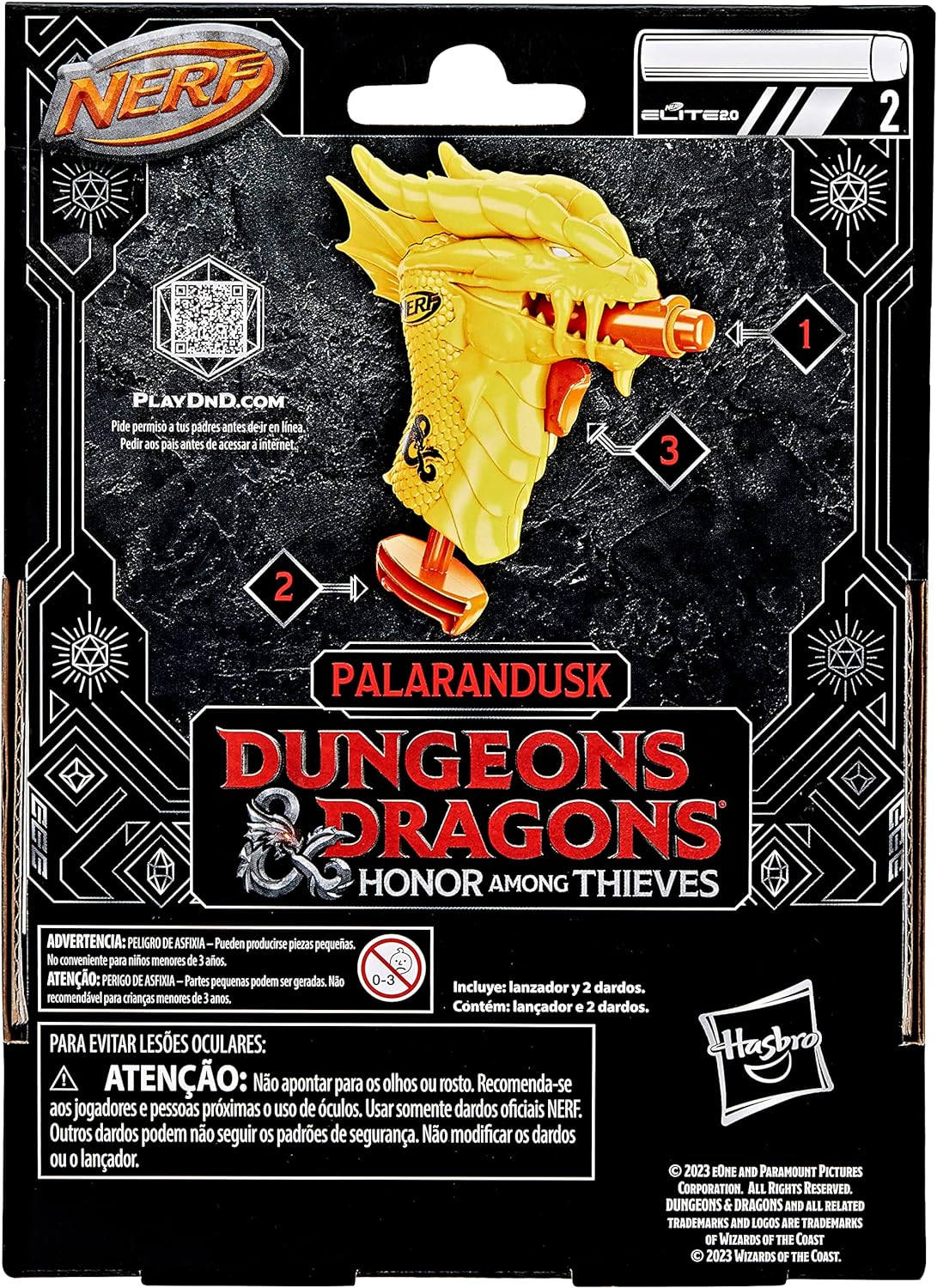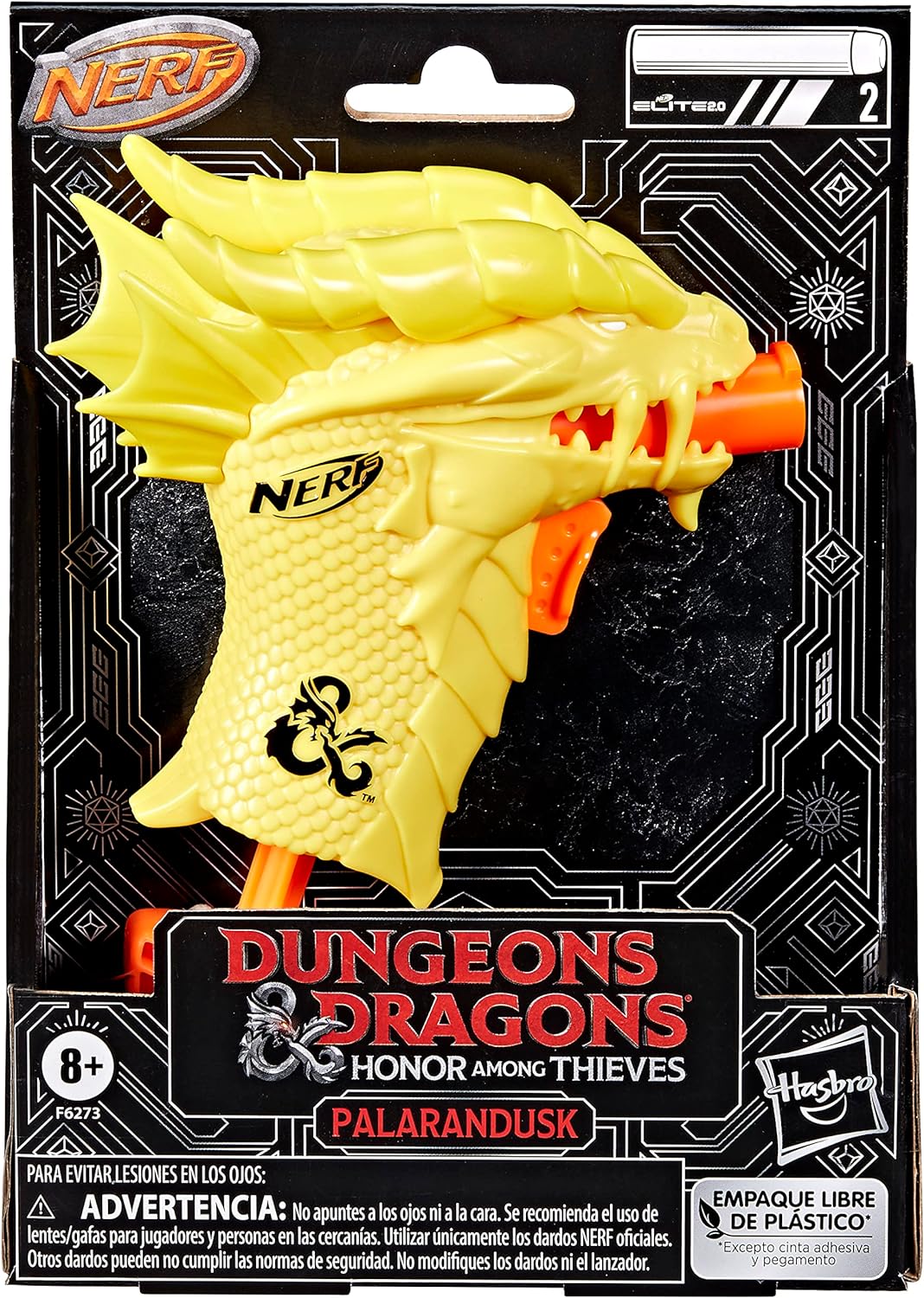 Wyrzutnia Nerf MicroShots Dungeons and Dragons Palarardusk przenosi magię Dungeons and Dragons: Honor Among Thieves i gry RPG. Blaster Gold Dragon wystrzeliwuje 1 strzałkę Nerf Elite, a jej kompaktowy rozmiar idealnie nadaje się do gier w pomieszczeniach i na zewnątrz. Inspiracją jest złoty smok Palarandusk, obrońca miasta Neverwinter w Zapomnianych Krainach DandD. Dzięki łatwej w obsłudze wyrzutni dzieci mogą bawić się w domu i na świeżym powietrzu. Umieść strzałkę w lufie, pociągnij w dół za uchwyt i naciśnij spust, aby wystrzelić. Dungeons and Dragons Palarardusk strzela na ponad 15 metrów i ma bardzo dobrą celność. W zestawie znajdują się również dwie strzałki, które swoją kolorystyką nawiązują do wyrzutni.