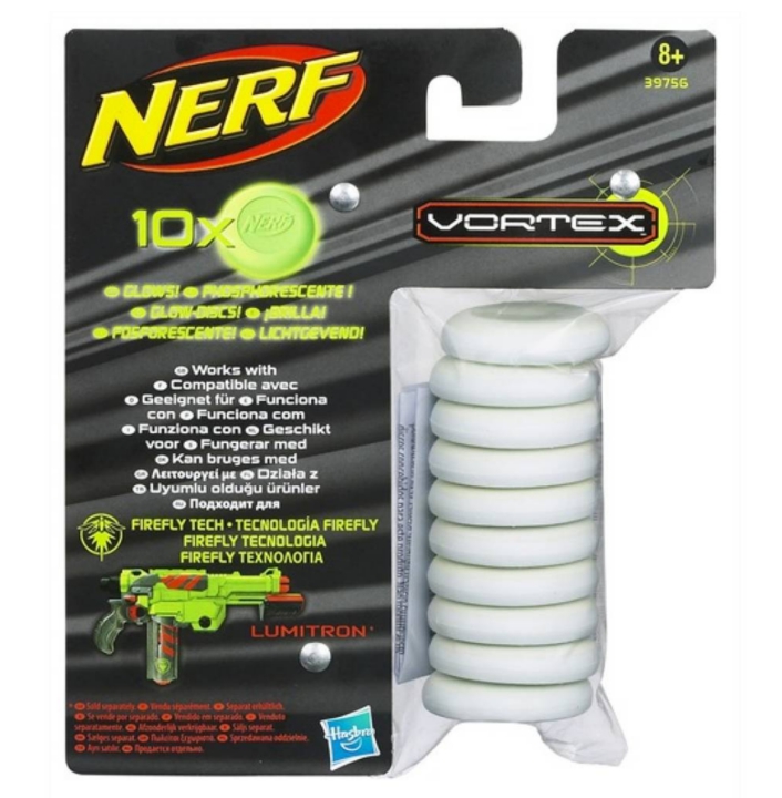 Nerf Dyski Vortex 10 szt. Świecące w Ciemności 39756