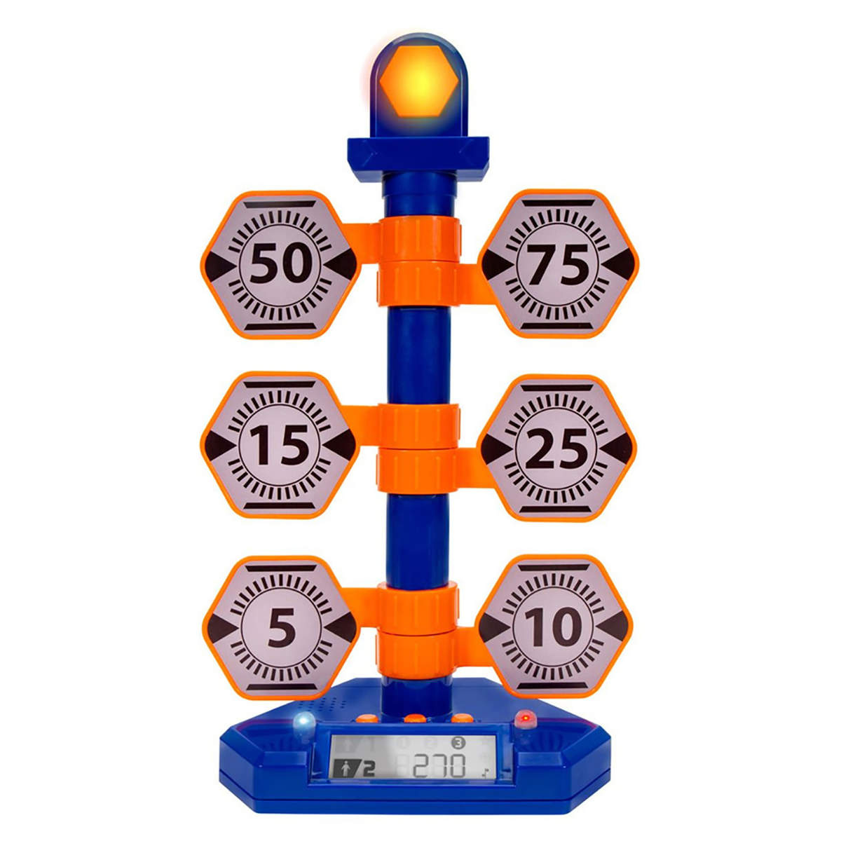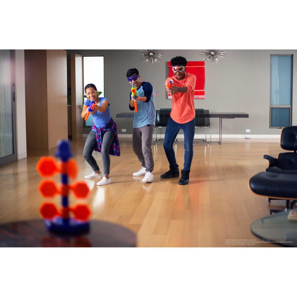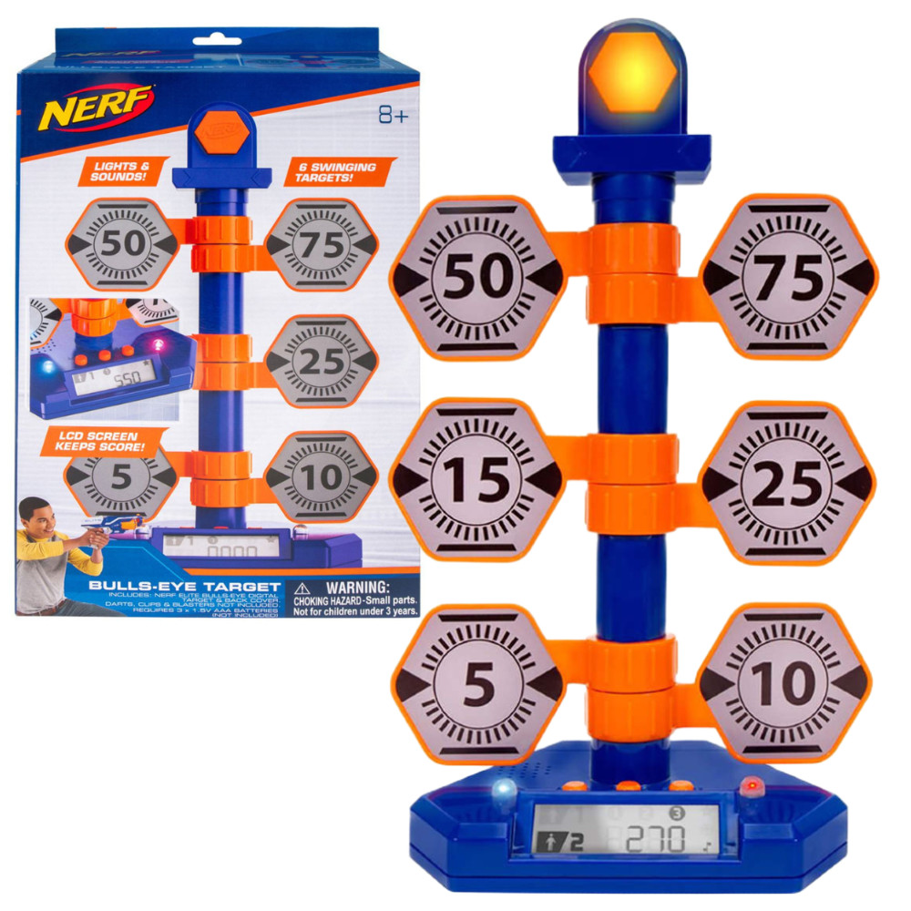 Twoje dziecko nauczy się celować i będzie ćwiczyć tę umiejętność, strzelając do podświetlanej cyfrowej tarczy Nerf. Ta interaktywna tarcza wydaje dźwięki i podświetla trafiony punkt, a cyfrowa wyświetlacz śledzi i wyświetla punktację. Tarcza wyposażona jest w tryby gry dla jednego lub wielu graczy, jest kompatybilna z większością wyrzutni Nerf, zapewniając wiele godzin zabawy. Dążenie do zwycięstwa nigdy nie było łatwiejsze dzięki cyfrowej tarczy strzeleckiej Nerf Bulls-Eye!