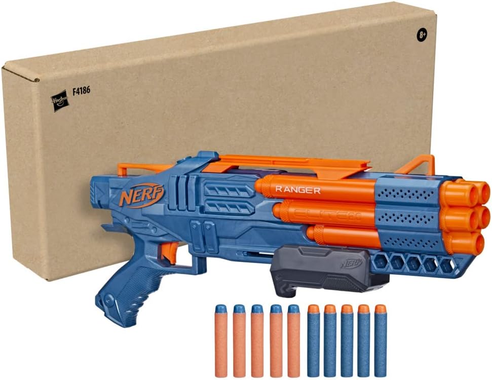 Poręczna, pełna akcji i gotowa do modyfikacji, oto nowa wyrzutnia Nerf Elite 2.0 Ranger PD-5. Efektowna wyrzutnia stylizowana na shotgun posiada lufę z aż pięcioma otworami! Ranger nie wymaga baterii, a dzięki wygodnemu uchwytowi można go błyskawicznie przeładować i oddać strzał jeden po drugim. Dodatkowo wyrzutnia poniżej lufy posiada magazynek na 5 strzałek, dzięki czemu będziesz mieć zapas strzałek zawsze pod ręką. Punkt mocowania kolby oraz szyna taktyczna znajdująca się na górze wyrzutni pozwalają dostosować ją do każdej misji lub bitwy. Ranger, jak większość wyrzutni z serii Elite ma także bardzo dobry zasięg.