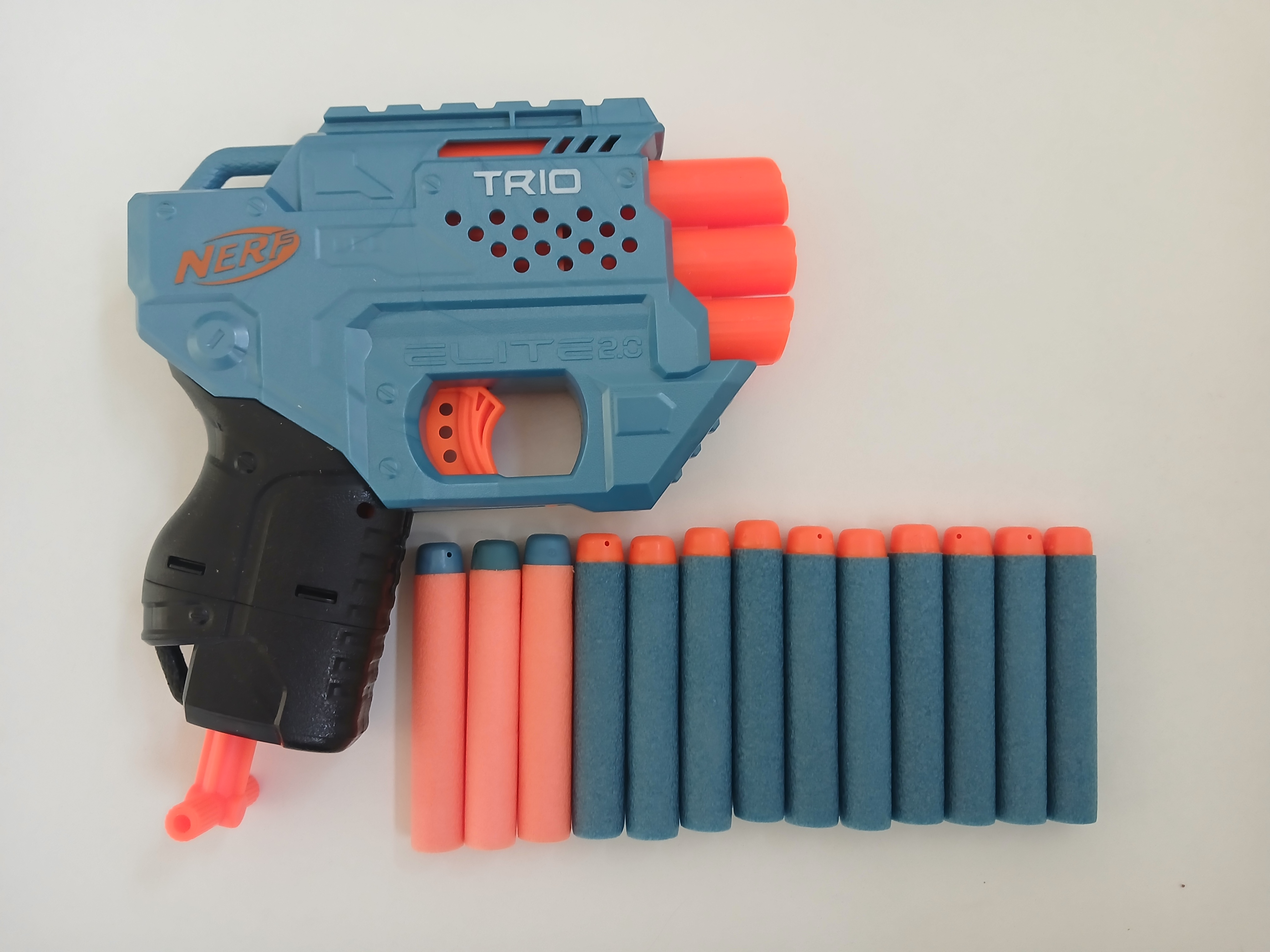 Trio to jednostrzałowa wyrzutnia kieszonkowa z lufą na trzy strzałki, podobna do N-Strike Elite Triad EX-3 i N-Strike Mega Tri-Break. Na górze znajduje się pojedyncza szyna taktyczna, za którą znajduje się punkt mocowania paska. Wyrzutnia ma lufę na 3 strzałki i z każdej lufy można wystrzelić. Dodatkowo wyrzutnia sama rozpoznaje, w którym miejscu znajduje się strzałka. Największymi zaletami wyrzutni jest jej poręczność oraz zwiększony zasięg, który dochodzi aż do 27 metrów!