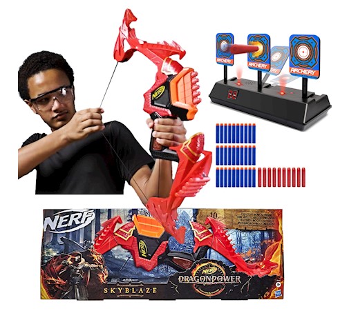 Nerf Elite Dragonpower łuk Skyblaze F0809 + 30 strzałek + tarcza elektroniczna