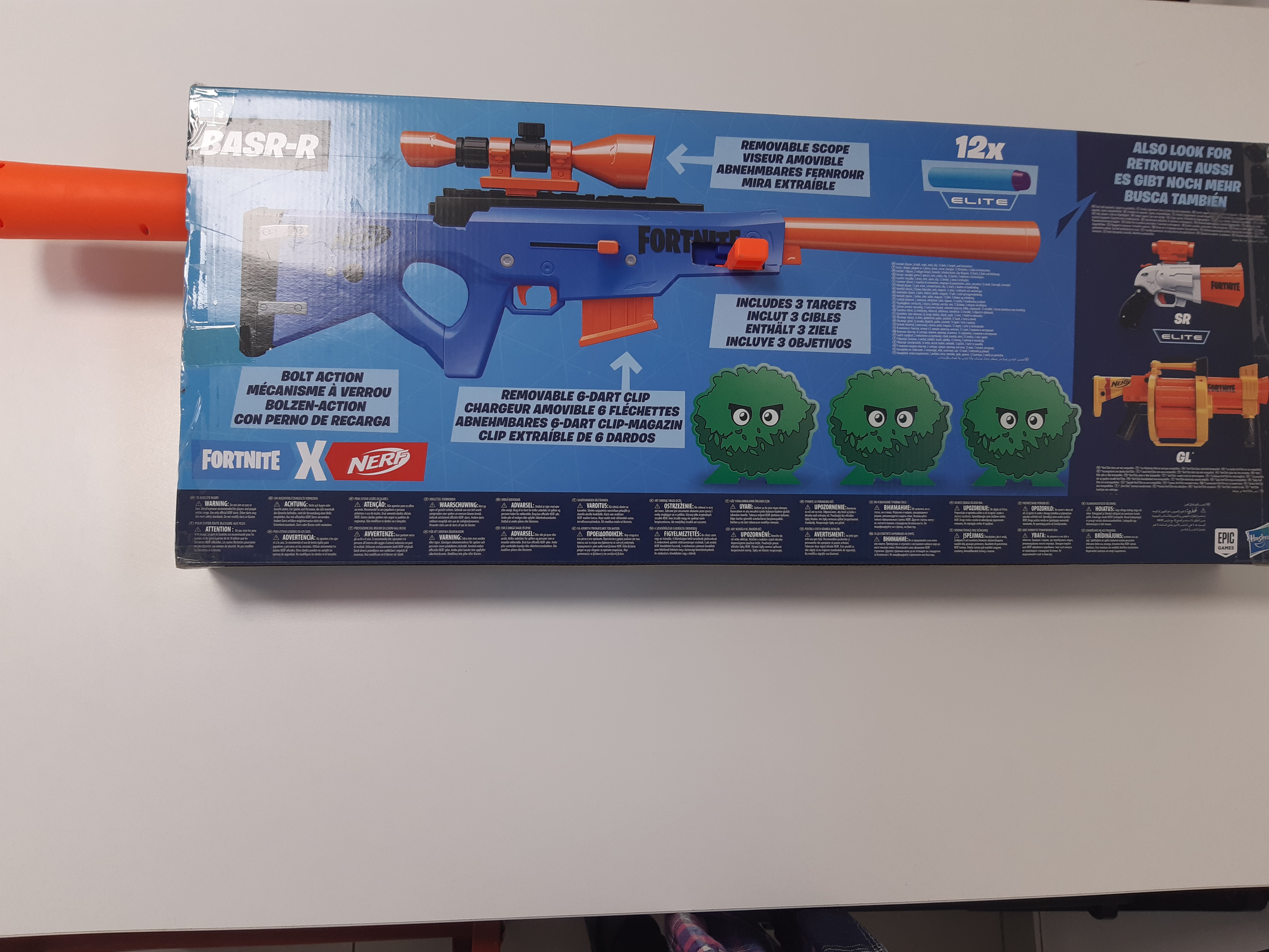 Nerf Fortnite BASR-R to bliźniaczy brat snajperki BASR-L w niebieskiej kolorystyce. Jest to ręcznie przeładowywana wyrzutnia dla snajpera prosto z gry Fortnite. Nerf został wyposażony w stylizowany na lunetę celownik oraz magazynek na 6 strzałek. Na górze wyrzutni znajduje się szyna taktyczna oraz komora do usuwania zaciętych strzałek. Wyrzutnia posiada tryb ciągłego ognia, więc można trafiać w cele jedne za drugim!