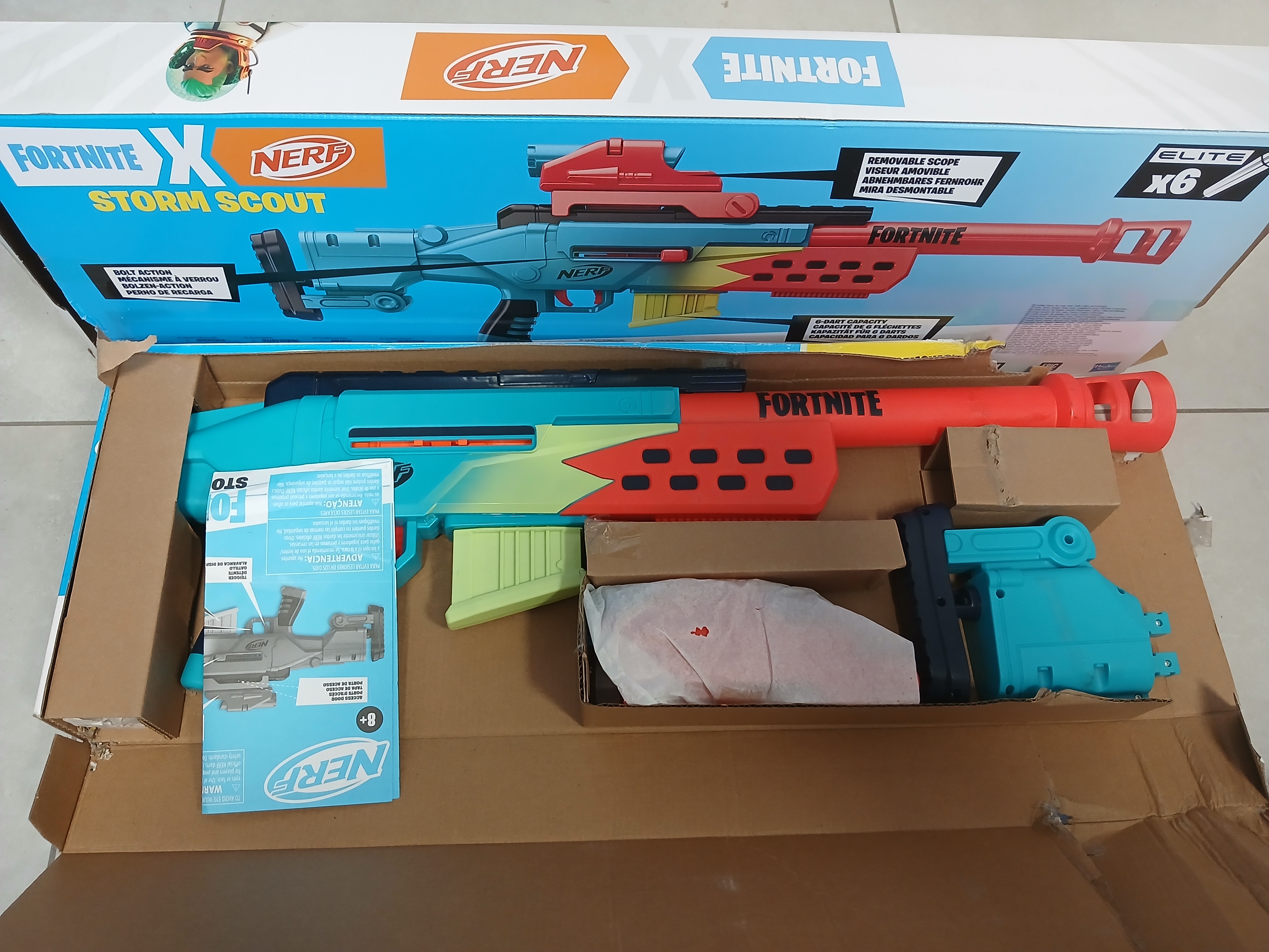 Nerf Fortnite Storm Scout wzorowany jest na wyrzutnie z popularnej gry Fortnite oraz dostępny na okładce Hypermelon. Wyrzutnia podobna jest do wyrzutni Nerf Fortnite BASR-R i można nazwać ją jej następcą. Jest to ręcznie przeładowywana wyrzutnia dla snajpera prosto z gry Fortnite. Nerf został wyposażony w stylizowany na lunetę celownik oraz magazynek na 6 strzałek. Na górze wyrzutni znajduje się szyna taktyczna oraz komora do usuwania zaciętych strzałek. Wyrzutnia posiada tryb ciągłego ognia, więc można trafiać w cele jedne za drugim! W zestawie znajduje się 6 czerwonych strzałek Elite, z czarną końcówką, zaprojektowanych specjalnie do linii Fortnite.