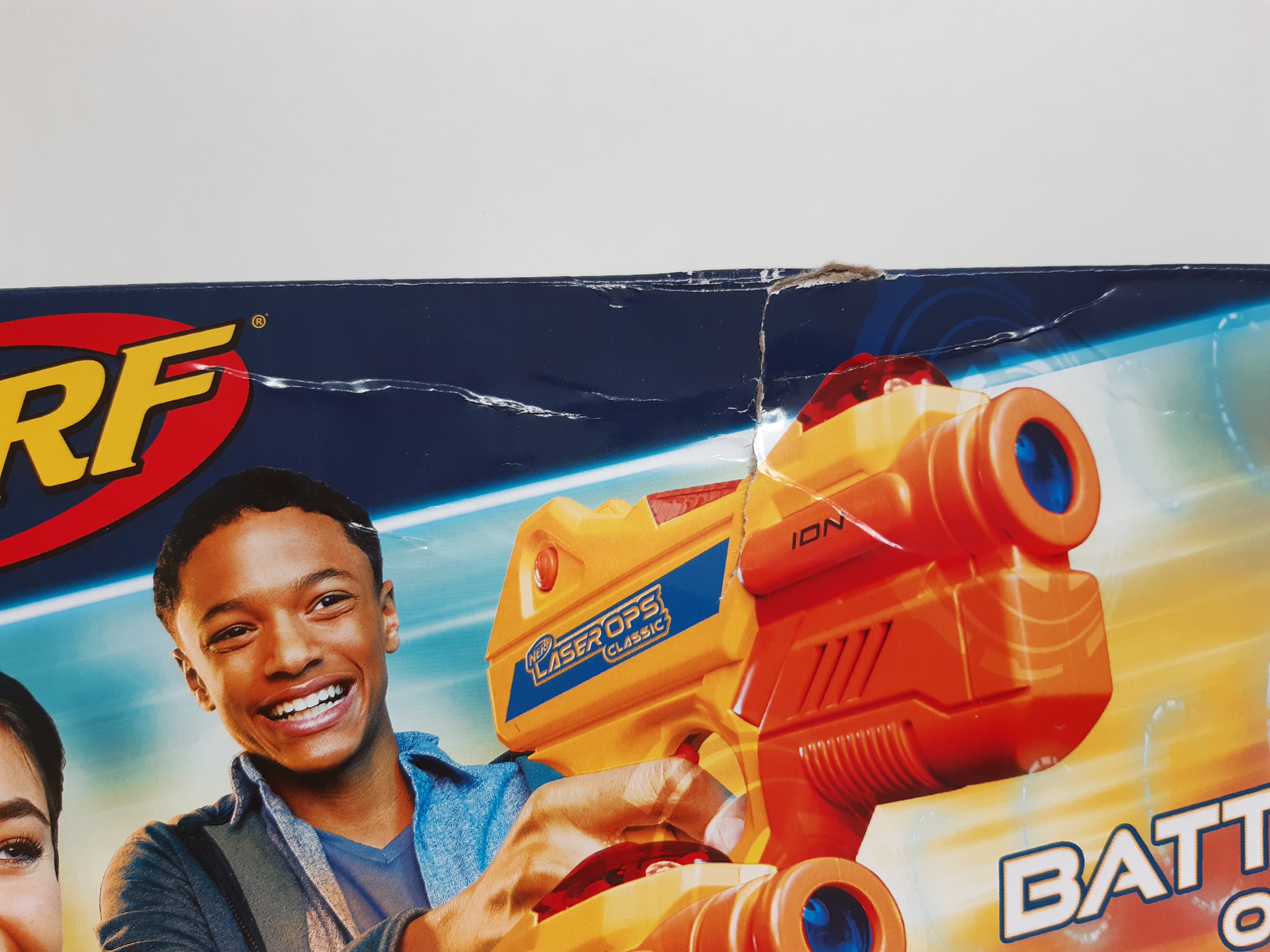 NERF Laser Ops Classic Dwie wyrzutnie E5393 Wyrzutnie laserowe wyeliminowały zupełnie piankowe strzałki. Już nigdy nie zabraknie ci amunicji, ponieważ wyrzutnia Laser Ops Classic nie potrzebuje strzałek czy magazynków, zamiast tego po naciśnięciu spustu wypuszcza wiązkę podczerwieni, trzeba jednak pamiętać o uzupełnieniu strzałów. Przypomni nam o tym specjalna ikona błyskawicy, która monitoruje ilość pocisków, gdy zasygnalizuje wykorzystany limit pocisków należy wcisnąć pomarańczowy przycisk, który znajduje się na spodzie rękojeści i gotowe można strzelać dalej. Możesz toczyć rozgrywki zarówno w pomieszczeniu, jak i na zewnątrz. Wyrzutnie Nerf Laser Ops Classic są kompatybilne z wyrzutniami Nerf Laser Ops Pro. Nie są one jednak zgodne z aplikacją Nerf Laser Ops Pro, dlatego podczas bitwy wyrzutnie Laser Ops Pro nie powinny być połączone z aplikacją.