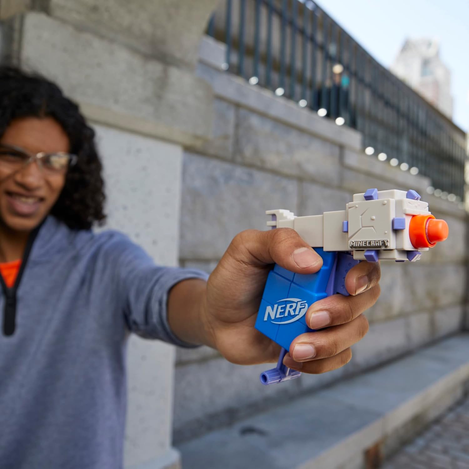 Ciesz się świetną zabawą z tym zestawem 2 małych wyrzutni Nerf MicroShots Minecraft, które oddają wygląd różnych mobów Minecraft. Zestaw zawiera wyrzutnię Elder Guardian, która jest dostępna tylko w tym dwupaku oraz wyrzutnię Ender Dragon. Te małe wyrzutnie Nerf MicroShots Minecraft wystrzeliwują 1 strzałkę na raz i są zabawne i łatwe w użyciu. Wystarczy załadować 1 strzałkę do przedniej części wyrzutni, pociągnąć w dół uchwyt i nacisnąć przycisk, aby wystrzelić. Są to świetne dodatki do kolekcji Nerf i Minecraft oraz idealny prezent dla fanów Minecraft i graczy Nerf.