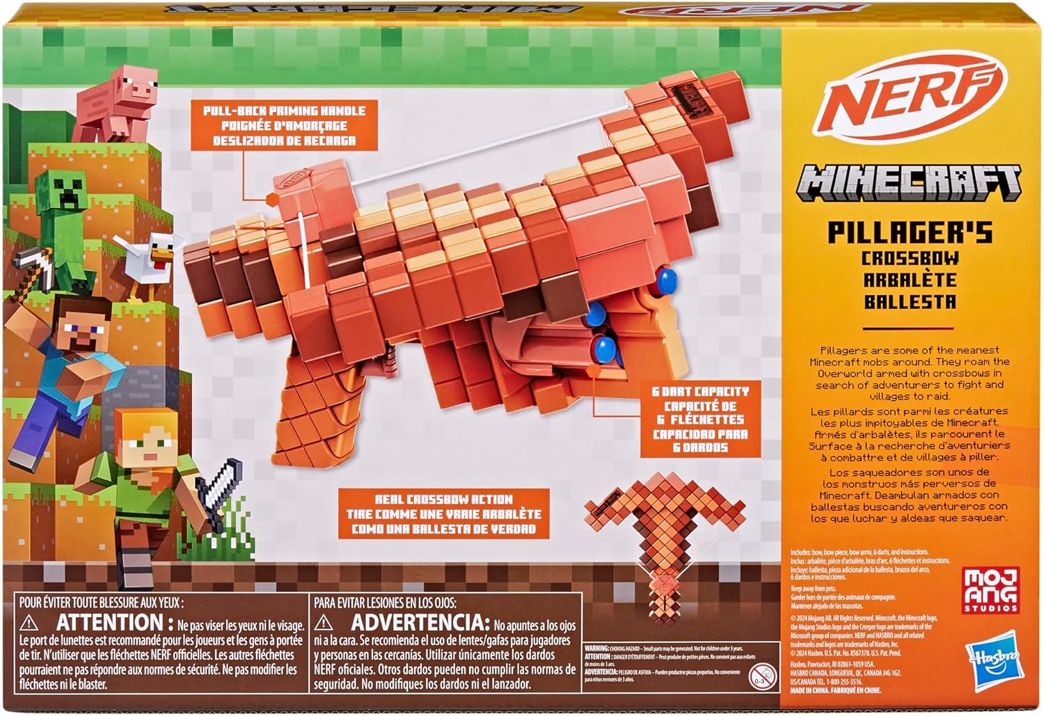 Nerf i Minecraft połączyły siły, aby stworzyć wyjątkowe miotacze do bitew Nerf! Kusza Nerf Minecraft Pillager's Crossbow została zainspirowana popularną grą Minecraft. Strzelaj do celów i poczuj prawdziwą akcję. Naciągnij cięciwę kuszy, pociągając dźwignię do tyłu. Kusza ma magazynek na 6 strzałek, więc możesz wystrzelić 6 strzałek z rzędu. Kusza Nerf Minecraft zawiera 6 oficjalnych strzałek piankowych Nerf N1, które zapewniają wyjątkową celność, prędkość i zasięg.