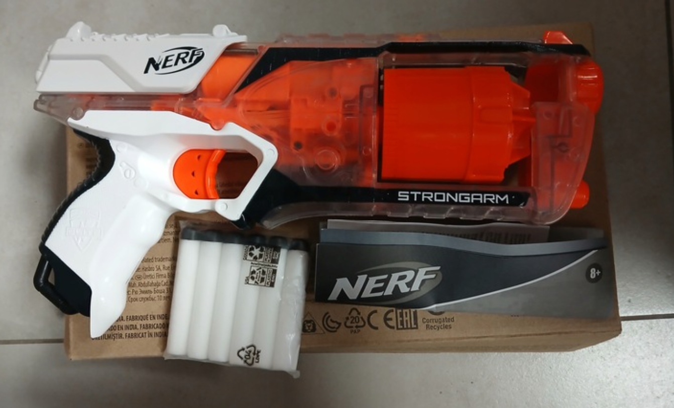 W porównaniu do poprzedniego modelu magazynek w Strongarmie kręci się niezwykle łatwo. Dzięki nowemu systemowi przeładowywania wyrzutnia jest mniej podatna na blokowanie się strzałek podczas zabawy. Całkowitą nowość stanowią również dwa tryby oddawania strzału - pojedynczy oraz ciągły. Strongarm to świetny wybór zarówno na początek przygody z Nerfem oraz jako uzupełnienie kolekcji.