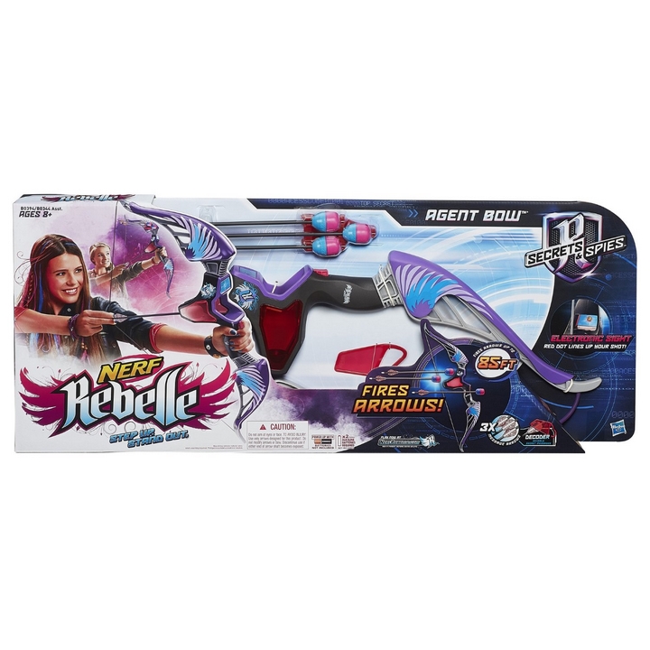 Wybieraj nawet najtrudniejsze cele z tym niezwykle precyzyjnym łukiem! Zestaw Łuk Tajnej Agentki składa się z trzech piankowych strzał, każda z nich ma zasięg do 25 metrów, oraz specjalnego wizjera ze świecącą czerwoną kropką, byś mogła precyzyjnie podążać za swoim celem i dokładnie go namierzać. Strzały wydają charakterystyczny świst, a jedna z nich może przenosić zakodowane informacje (które można odczytać dzięki załączonemu dekoderowi). Łuk ma także zdejmowany kołczan do przechowywania strzał.