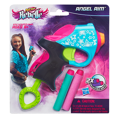 Celuj, ukryj się i strzel ze stylowej wyrzutni, która jest tak mała, że możesz schować ją w kieszeni lub torebce! Dodatkowo posiada magazynek na podwójne strzałki! Musisz mieć wszystkie 3!