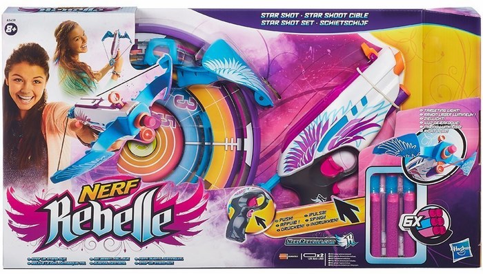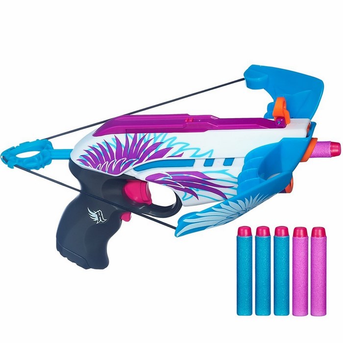 Zaskocz rywalki umiejętnością precyzyjnych strzałów. Rywalizuj z przyjaciółmi i urządzaj turnieje w strzelaniu do celu. Specjalna wyrzutnia w kształcie kuszy ma "laserowy" celownik, który ułatwia dokładny i precyzyjny strzał. Namierz swój cel i strzelaj! Z dwoma różnymi kolorami strzałek - jedna dla Ciebie, druga dla przeciwnika - z łatwością rozpoznasz gdzie trafiły Twoja, a gdzie konkurencyjne. Trenuj by osiągnąć najlepsze rezultaty. Tarcza może byś postawiona na stole lub powieszona na drzwiach.