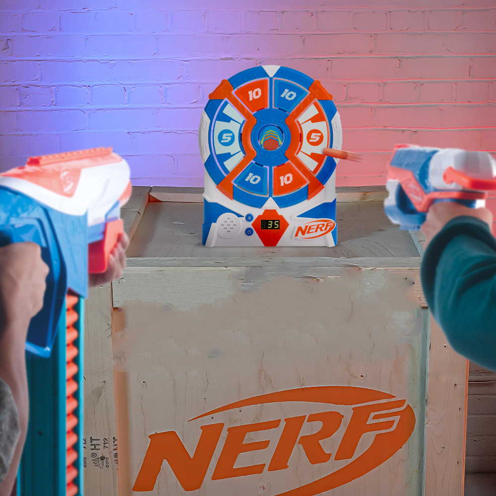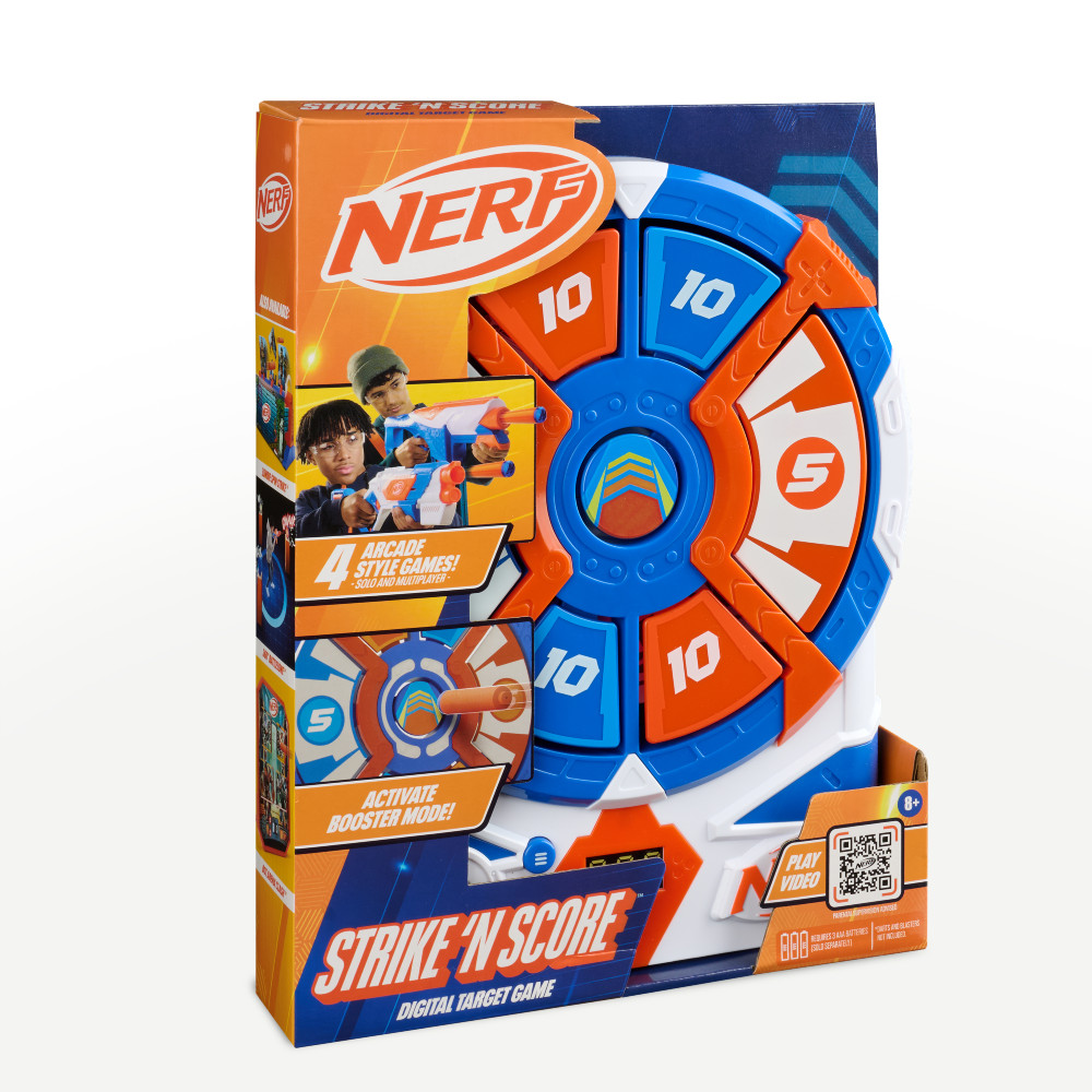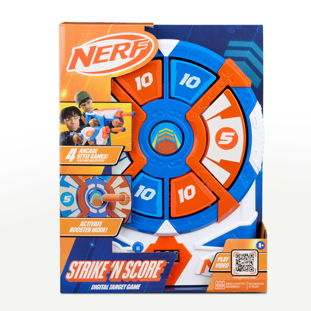 Wskocz do akcji w stylu arcade z NERF Strike ‘N Score ! Ta tarcza to idealne połączenie szybkiej akcji, rywalizacji i treningu celności. Dzięki 7 reaktywnym celom, wbudowanemu ekranowi śledzenia wyników i efektom dźwiękowym inspirowanym grami, poczujesz się jak w prawdziwej sali gier! Wybierz jeden z 4 epickich trybów rozgrywkii sprawdź swoje umiejętności solo lub w drużynie.