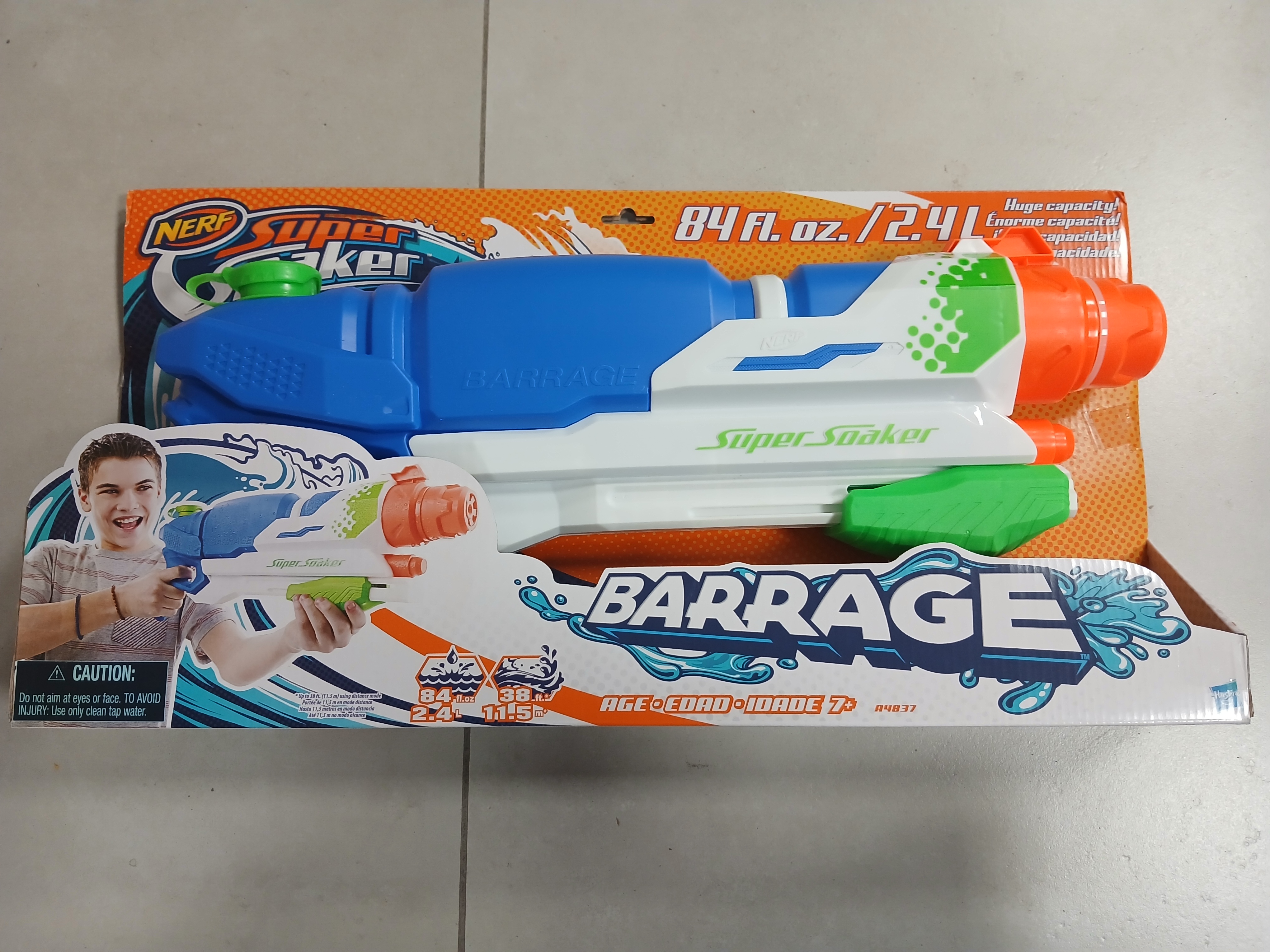 Pistolet na wodę Nerf Super Soaker Barrage A4837 to niesamowita wyrzutnia z trzema trybami strzału i o największej obecnie pojemności wody!