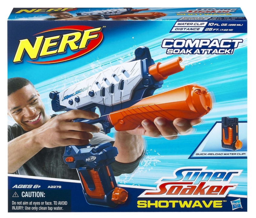 Shotwave A2279 z serii Nerf Super Soaker to blaster wodny pod wysokim ciśnieniem, który gwarantuje ciągły mocny strumień wody na ponad 7 metrów, zawsze gdy tego potrzebujesz. Wyposażono go w podczepiany magazynek na wodę, dzięki któremu będziemy w grze bez konieczności uzupełniania blastera wodą. Zasięg blastera to ponad 7 metrów, a pojemność zbiornika pomieści 0,3l wody. Napompuj i pociągnij za spust, a nie zostawisz na przeciwniku suchej nitki.