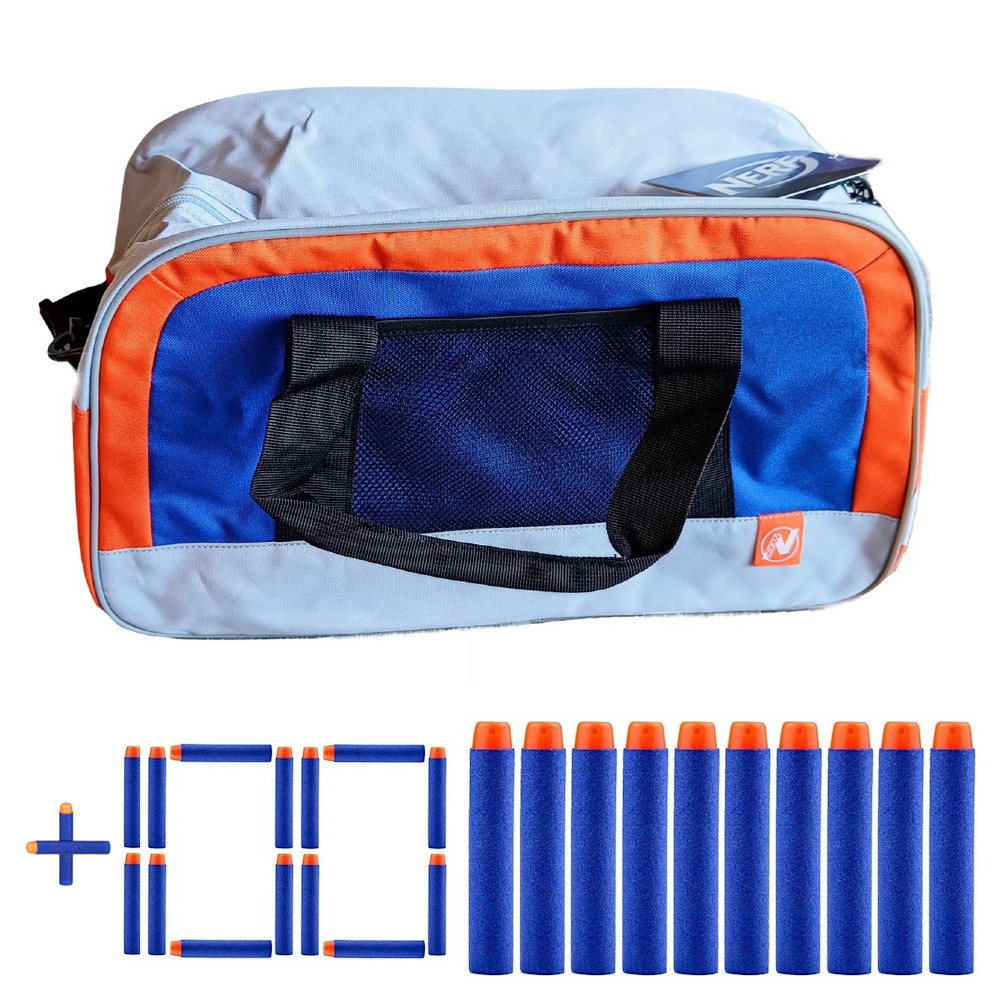 Torba Nerf sprawdzi się zarówno jako torba wycieczkowa, szkolna czy na zajęcia sportowe, spotkania z kumplami czy bitwy Nerf. Torba jest bardzo lekka. Posiada jedna główną komorę z małą kiszonką wewnątrz, na np. dokumenty czy pieniądze. Przód torby również został wyposażony w małą kieszonkę z siatki. Dodatkowo torbę można nosić na dwa sposoby: za pomocą krótszych rączek po obu stronach torby, lub za pomocą długiego paska na ramię, który znajduje się wewnątrz torby. Wystarczy wpiąć pasek w specjalne uchwyty i można swobodnie zarzucić torbę na ramię, nie musząc nieść jej w rękach. Pasek jest regulowany.