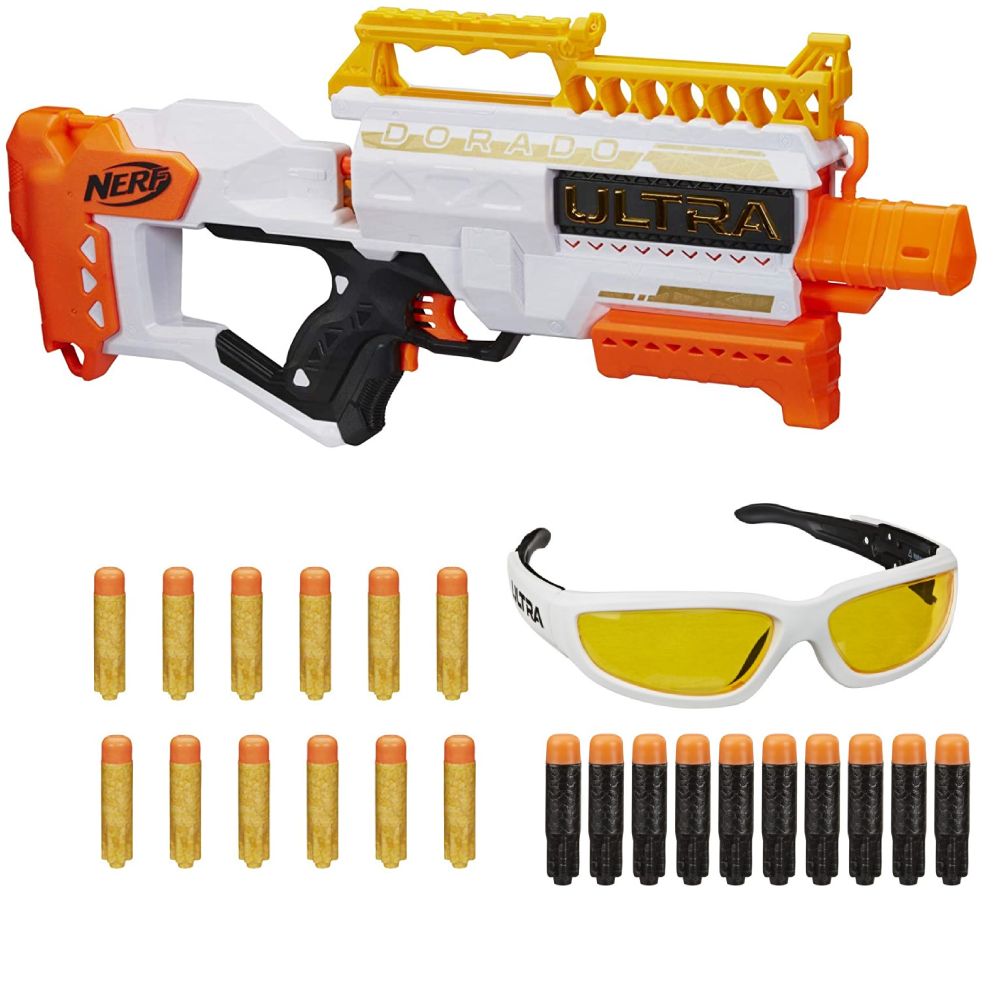 Pistolet z serii Nerf Ultra Dorado to wyrzutnia półautomatyczna o wyjątkowo dalekim zasięgu. Zasilany jest na baterie: 6xAA. Posiada magazynek bębenkowy na 6 strzałek. Magazynek ładowany jest z tyłu pistoletu, a nie jak w przypadku Disruptora czy Strongarma z przodu. Takie rozwiązanie dodatkowo pomaga kontrolować ilość amunicji, jaka pozostała w magazynku. Wyrzutnia posiada komorę do odblokowania zaciętej strzałki. Na górze wyrzutni znajduje się szyna taktyczna oraz uchwyt na zapasowe 6 strzałek. Wyrzutnia posiada także punkty mocowania pasa. Specjalne strzałki Nerf Ultra są wyjątkowe i nie są kompatybilne z innymi seriami Nerf. Strzałki Nerf Ultra cechują się wyjątkową szybkością, precyzyjnością oraz odległością. Wyrzutnia ma wyjątkowo daleki zasięg, który dochodzi nawet do 36 metrów.