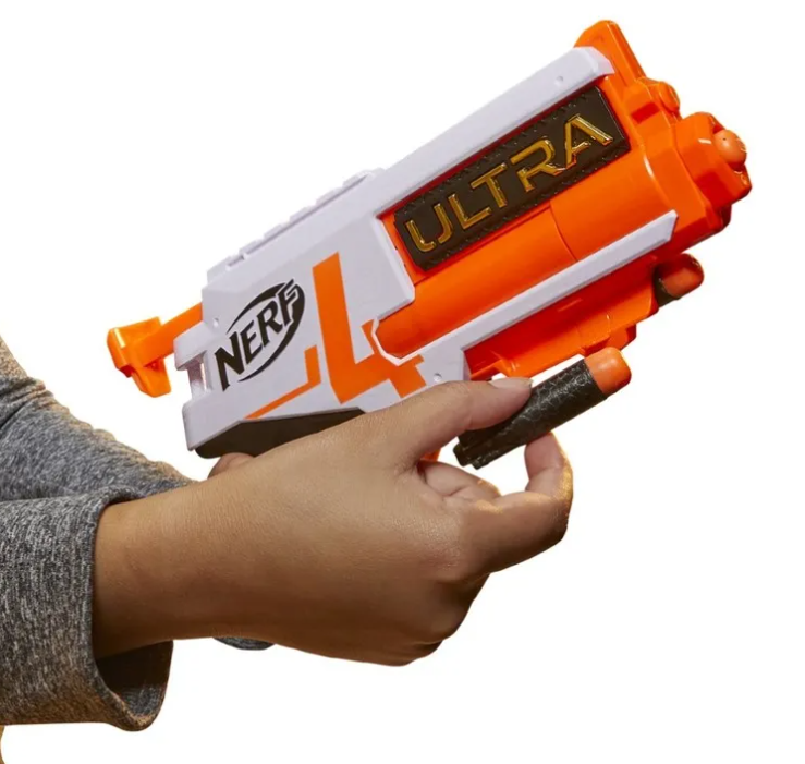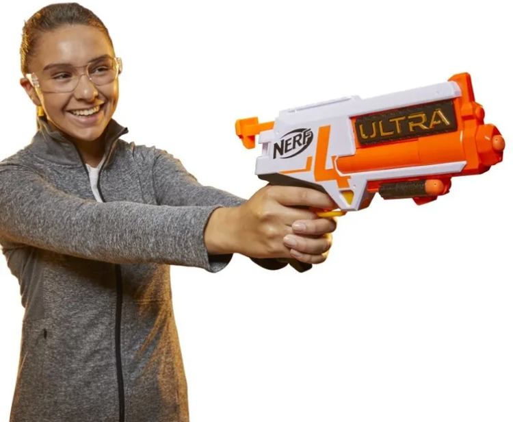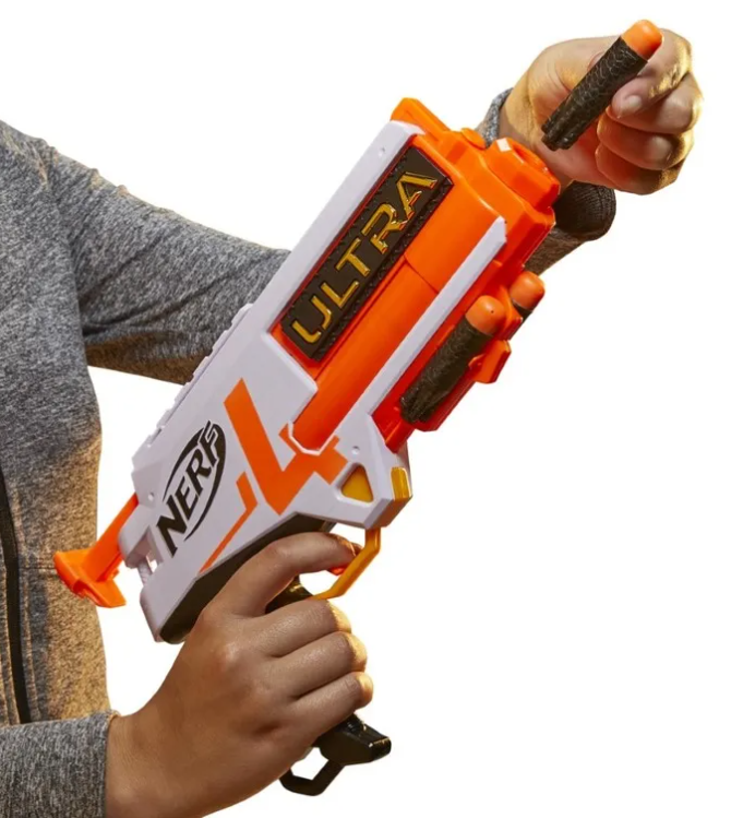 Oto kolejna wyrzutnia z supercelnej serii Nerf Ultra. Żeby wystrzelić, wystarczy włożyć strzałkę do lufy, pociągnąć za uchwyt z tyłu i nacisnąć spust. Uchwyt do przeładowywania jest duży i łatwy do złapania, co znacznie ułatwia przeładowanie nawet młodszym dzieciom. Wyrzutnia ma bardzo dobry zasięg i strzela do 25 metrów. Na górze wyrzutni znajduje się szyna taktyczna. Pod lufą znajduje się otwarty magazynek, w którym możemy przechowywać do 2 strzałek. Specjalne strzałki Nerf Ultra są wyjątkowe i nie są kompatybilne z innymi seriami Nerf. Strzałki Nerf Ultra cechują się wyjątkową szybkością, precyzyjnością oraz odległością.