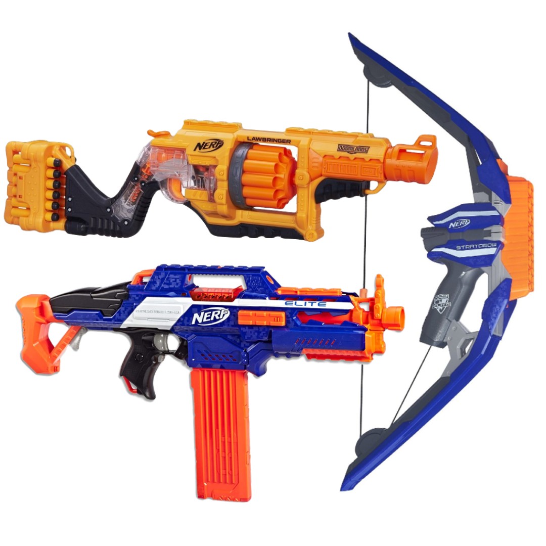 Prawdziwa gratka dla fanów Nerf! Zestaw składa się z 2 Nerfów z serii Elite, w tym 1 łuku oraz 1 Nerfa z serii Doomlands do samodzielnej naprawy dla majsterkowicza z zamiłowania.