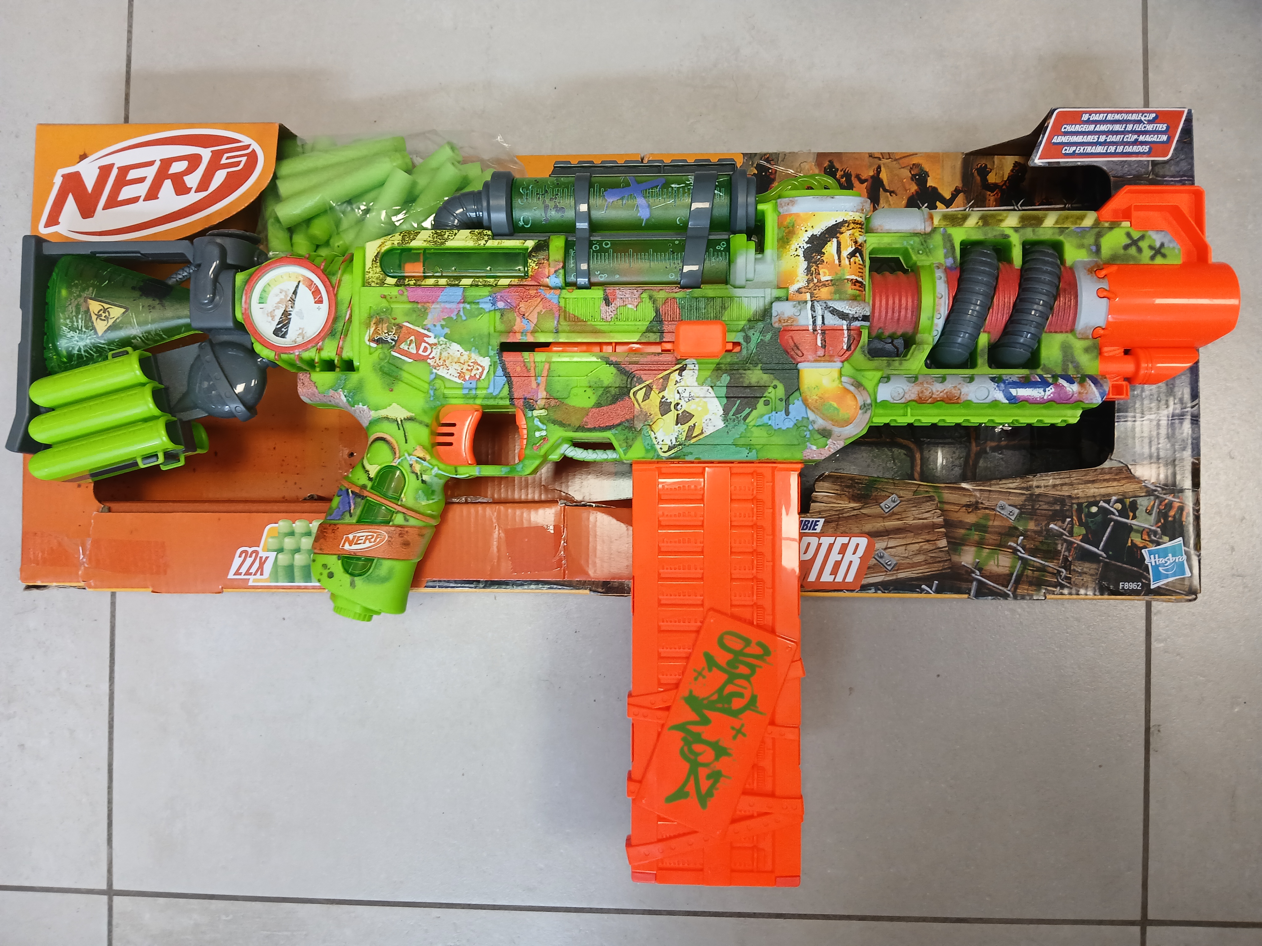 Pistolet w całości pokryty kolorowymi, graffiti, wygląda jak wyjęty prosto z komiksu. Dzięki systemowi przeładowania typu bolt-action, dużemu magazynkowi na 18 strzałek, dodatkowemu schowkowi na 6 strzałek i dwóm szynom taktycznym, to wyrzutnia gotowa na każdą zombie-bitwę. A dzięki obustronnemu zamkowi przeładowującemu, karabin jest idealny zarówno dla prawo-, jak i leworęcznych graczy!