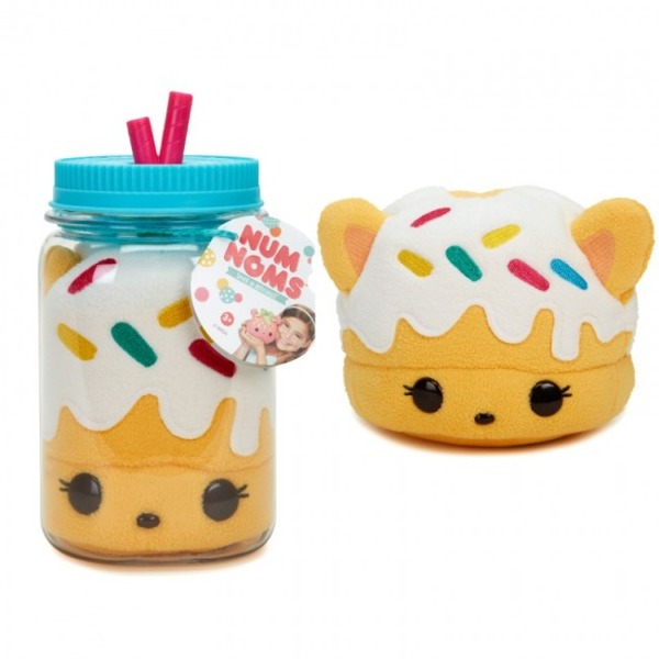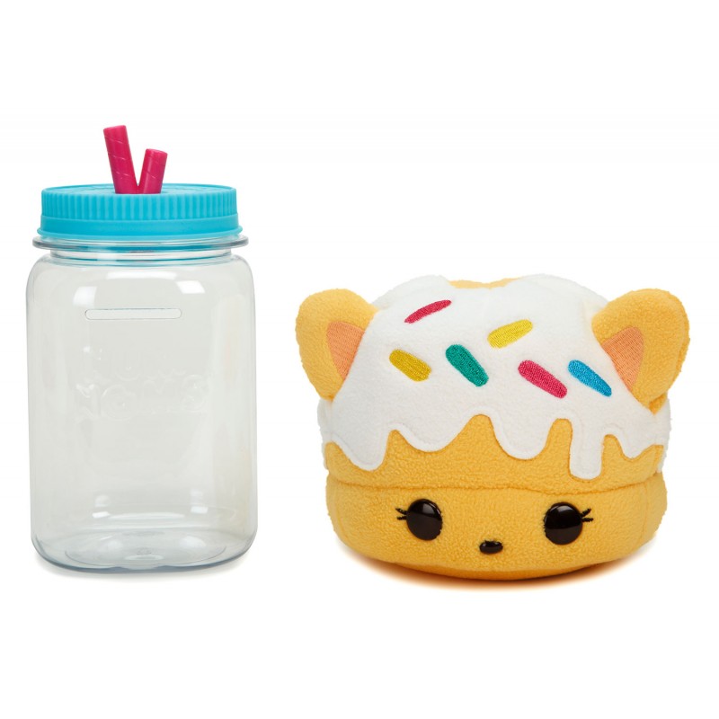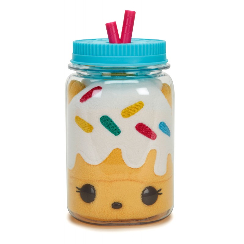 Plastikowy słoiczek z niebieskim wieczkiem, z imitacją słomek, kryje w sobie pachnącego, pluszowego Num Nomsa. Każdy z nich ma swój unikalny zapach. A ich uroczy wygląd deseru z buźką... Mniam! Zbierz je wszystkie, tul do woli i ciesz się jeszcze piękniejszymi zapachami niż dotychczas. Niespodzianka w słoiku to miękka, kolorowa maskotka Nom. Słoiczek może być jego domkiem czy skarbonką, dzięki tylnemu otworowi na monety. Zbierz całą kolekcje pluszaków w słoikach!