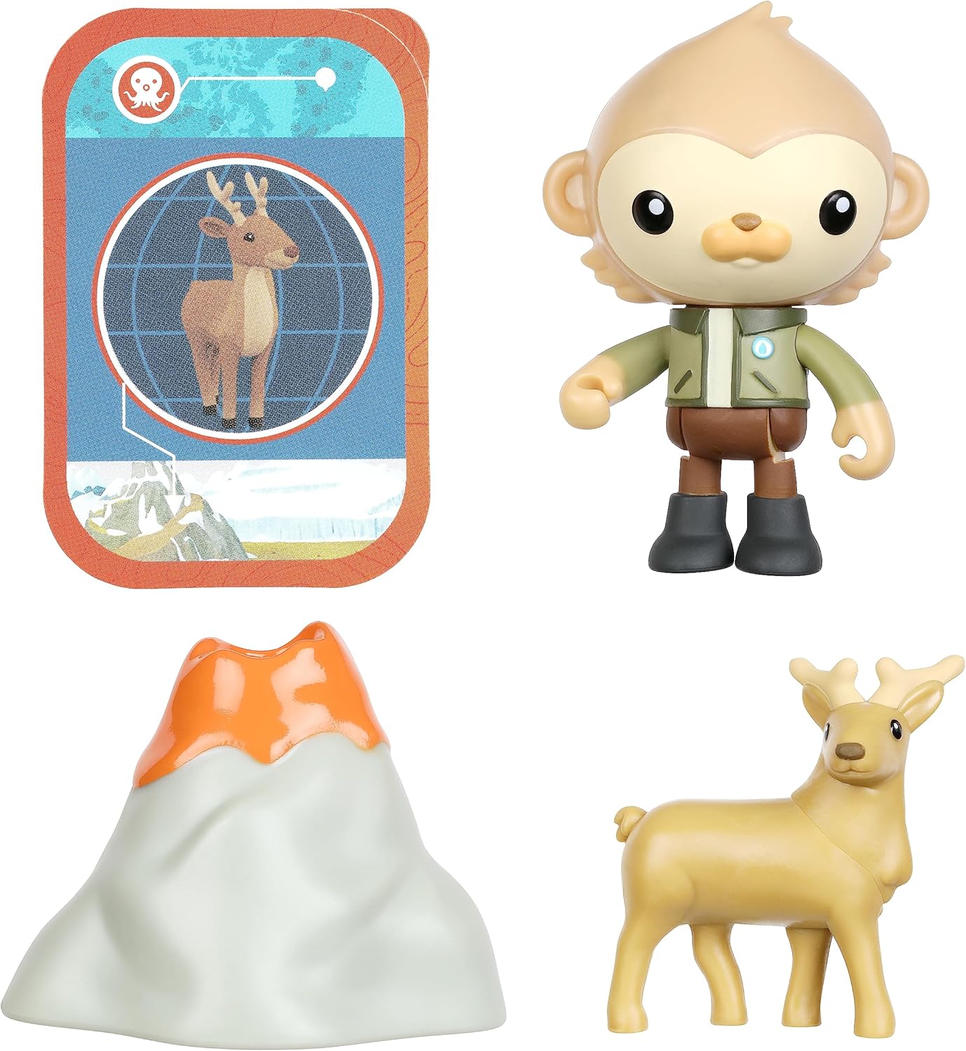 Odtwórz swoje ulubione sceny i przygody z Oktonauci: Przygody na Lądzie. W zestawie otrzymujemy aż cztery elementy: tytułową Paani, figurkę jelonka, wulkan oraz kartę misji. Bajkowa małpka mierzy 7 centymetrów wysokości i dysponuje ruchomymi rękami i nogami. Jest ubrana tak jak w bajce i wiernie odwzorowuje wygląd postaci z serialu.