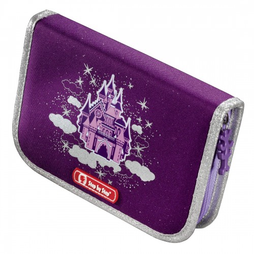 Piórnik szkolny w żywych barwach fioletu oraz błyszczącym srebrnym wykończeniem. Na froncie wzór pięknego zamku, który spełni oczekiwania wszystkich dziewczynek. W środku znajdują się przybory szkolne. Wyposażenie zawiera wszystkie elementy, które przydadzą się podczas początkowych lat nauki. Piórnik szkolny Hama Step by Step jest wykonany z najwyższej jakości materiałów, zapinany na zamek błyskawiczny. Jest doskonałym uzupełnieniem tornistrów z tej samej serii.