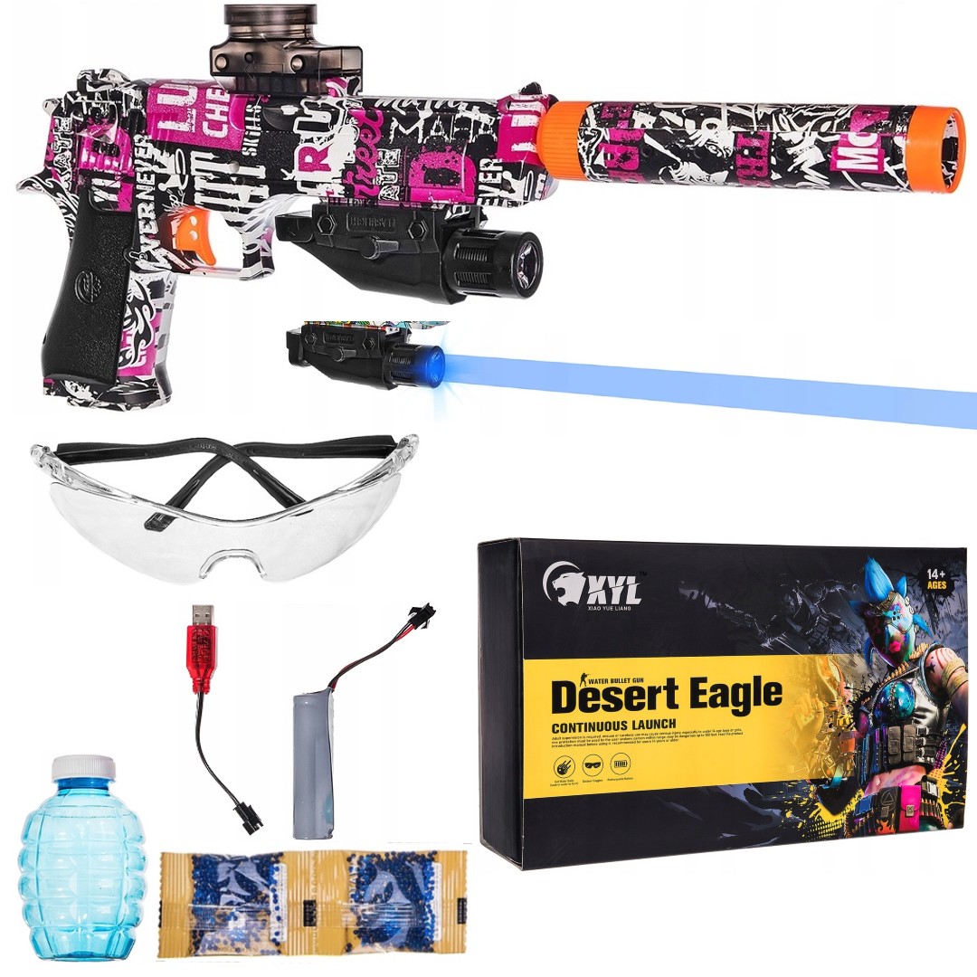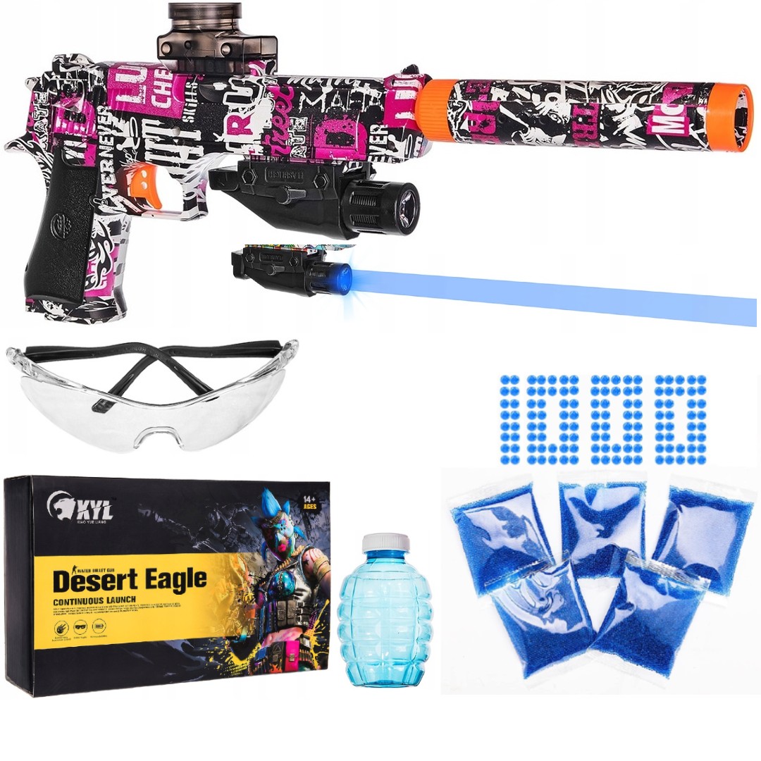 Pistolet automatyczny Glock DesertEagle z różową grafiką na kulki żelowe X506B - uszkodzone opakowanie