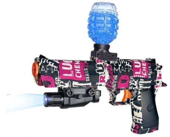 żelowe kulki. Pistolet jest zasilany na akumulator który pozwala