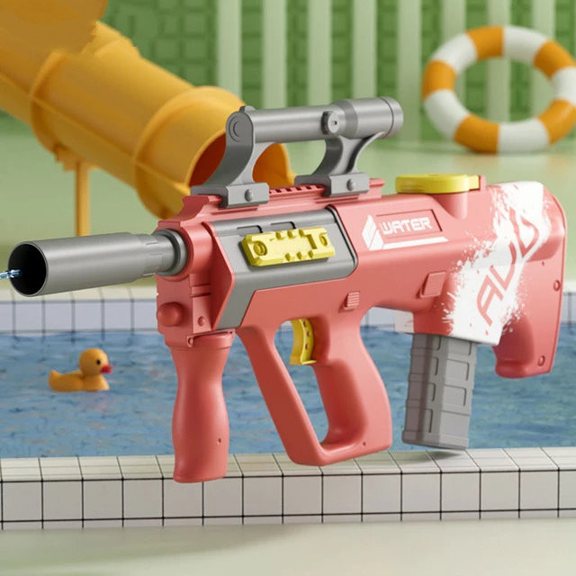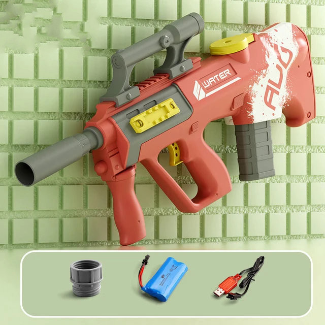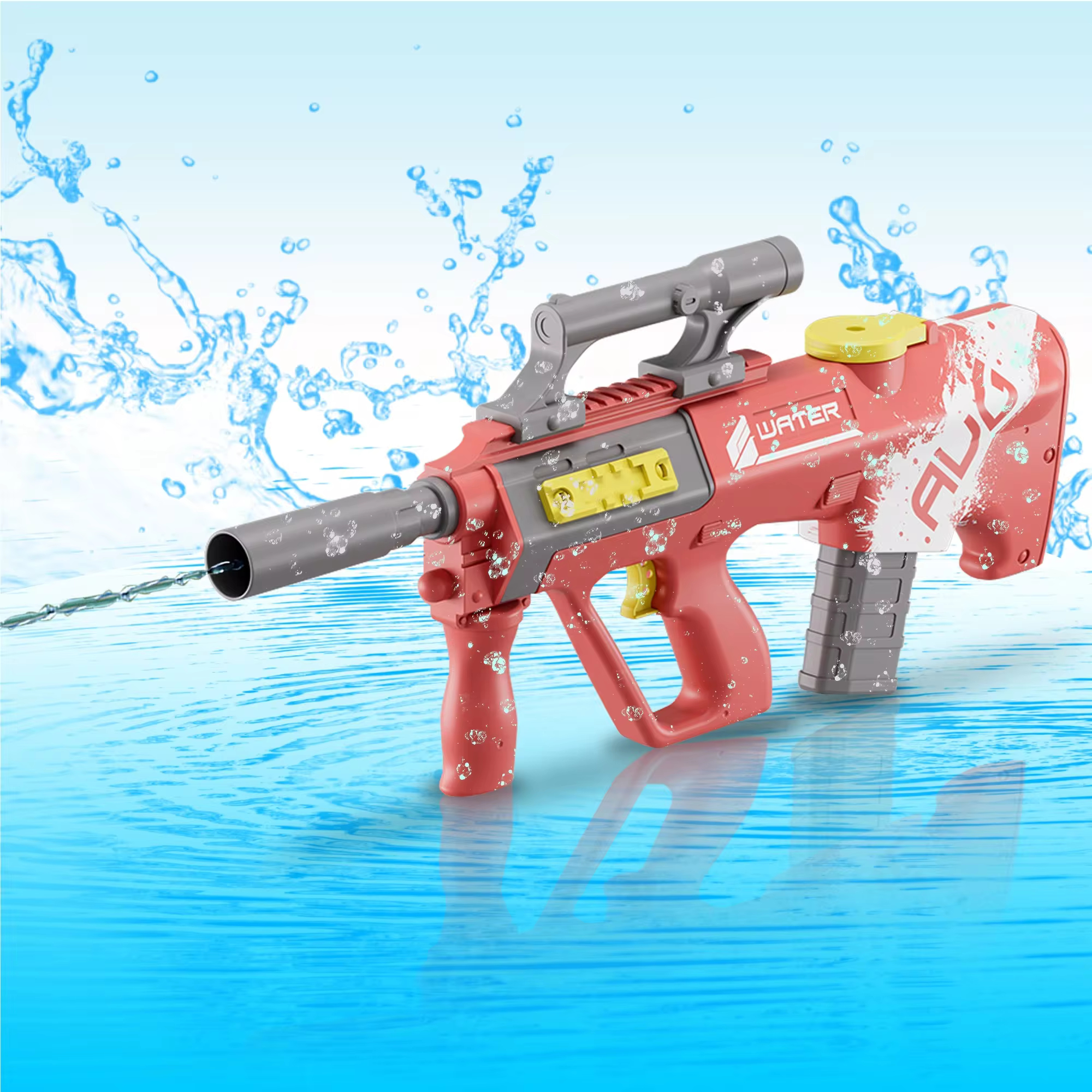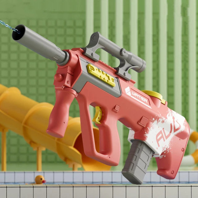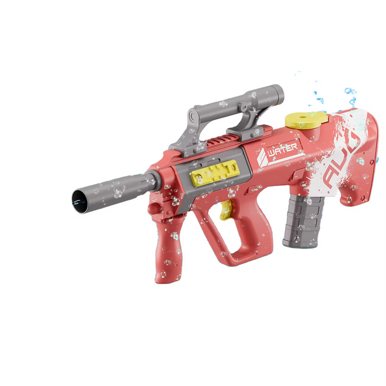 Elektryczny pistolet na wodę o dużej pojemności i dalekim zasięgu to idealna propozycja do zabawy na świeżym powietrzu. Pistolet posiada elektryczny mechanizm spustowy, który pozwala szybko i łatwo napełnić zabawkę wodą i rozpocząć wodną bitwę. Pistolet AUG o dużej prędkości jest całkowicie bezpieczny dla dzieci, ponieważ jest wykonany z ekologicznych materiałów. Co najważniejsze można w prosty sposób zwiększyć objętość wody w wyrzutni. Aby to zrobić, należy przymocować plastikową butelkę za pomocą specjalnego adaptera, który jest do dołączony do zestawu - pojemność dodatkowej butelki zależy od Ciebie.