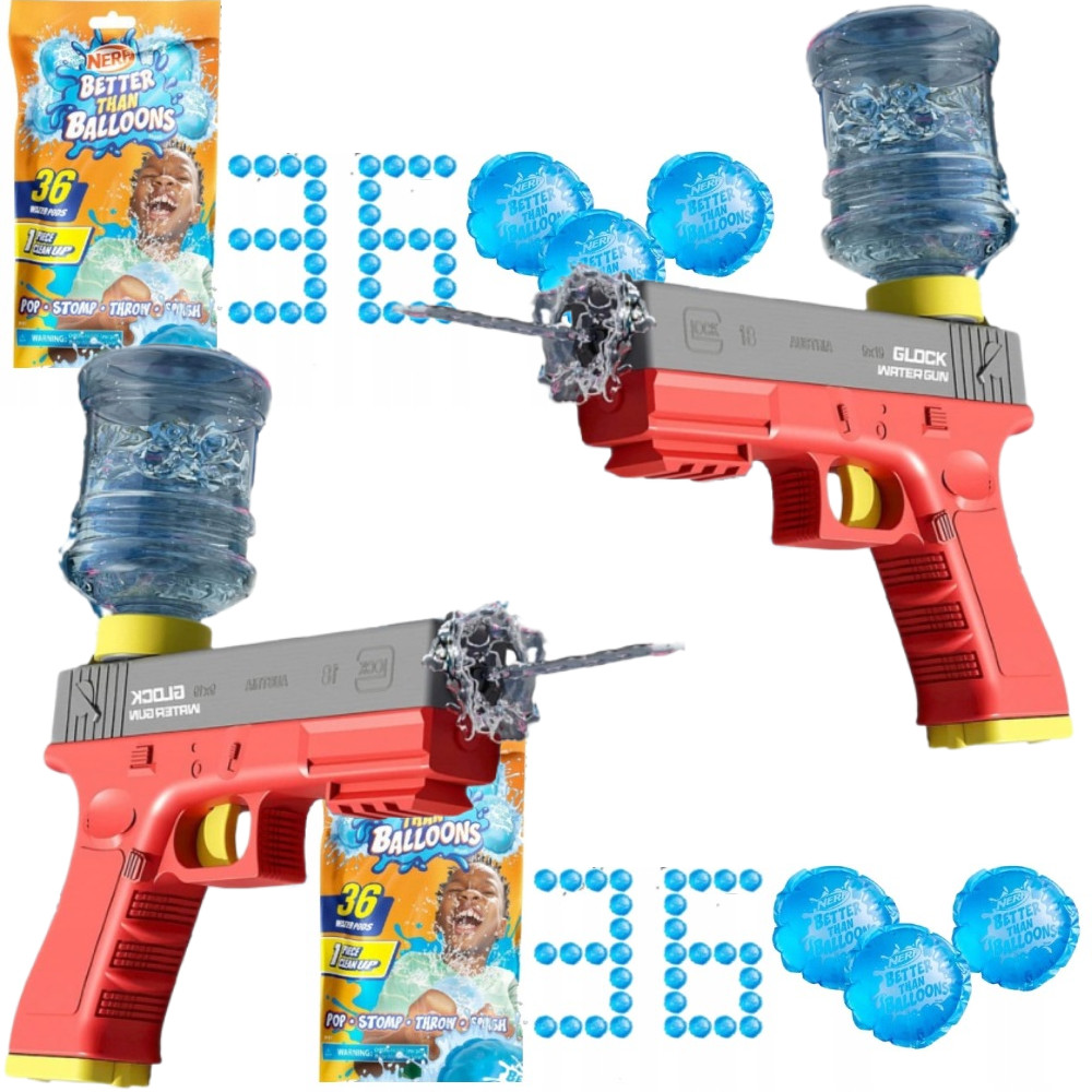 Pistolet na wodę elektryczny Glock19 czerwony 868 + Balony Bomby Wodne Nerf Zestaw dla Dwojga