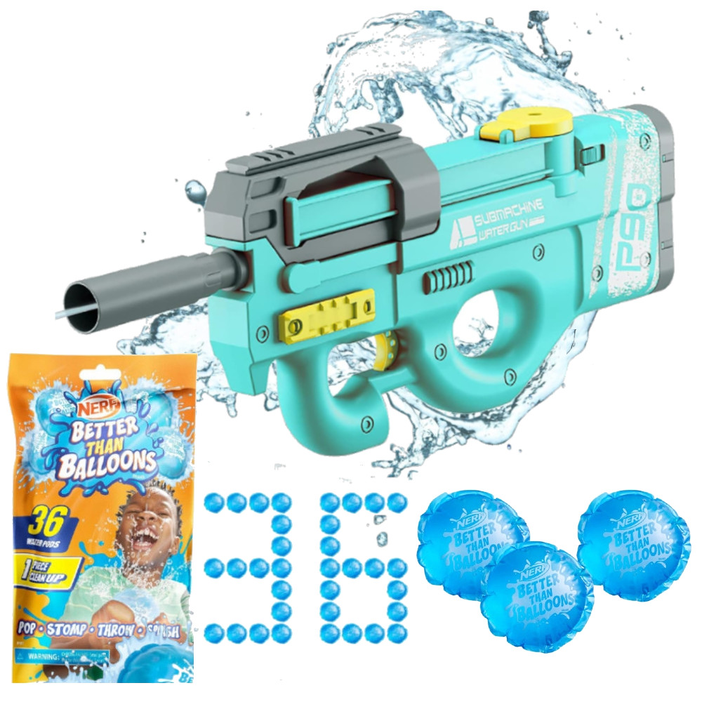Pistolet na wodę elektryczny P90 zielony XD8010 + Bomby Wodne Nerf