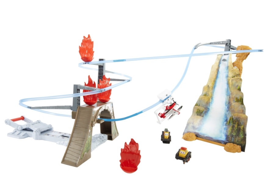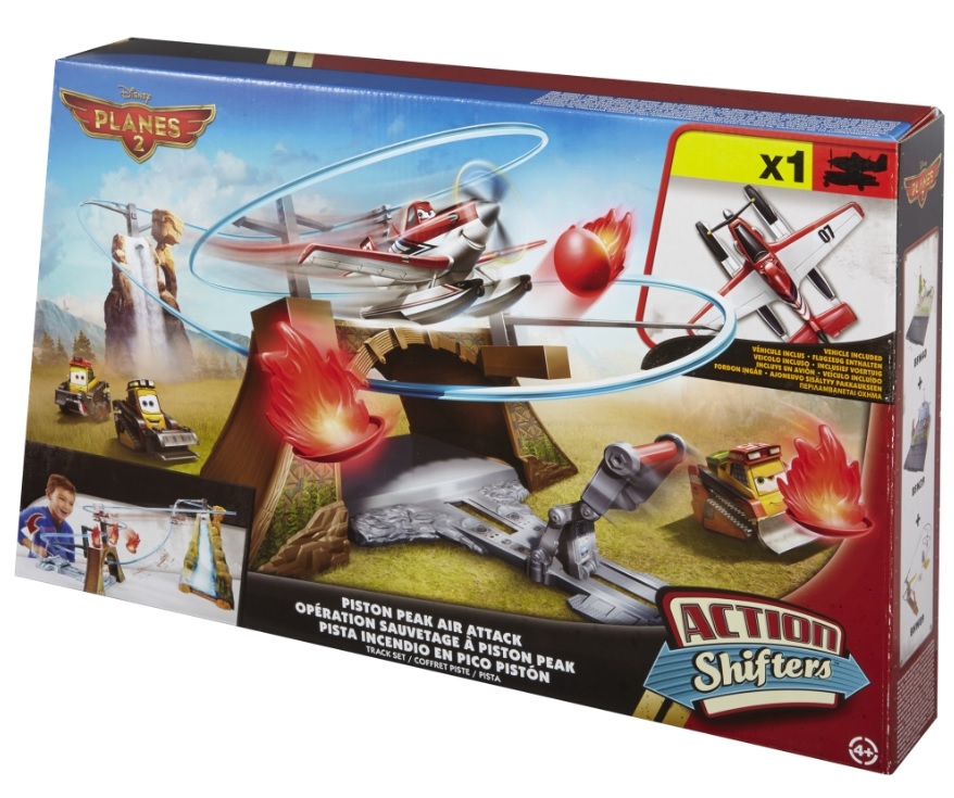 Ten ekscytujący zestaw zapewni Ci największe emocje i przygody najwyższych lotów! Wyrusz na akcję ratunkową i pomóż Dusty’emu uratować jego przyjaciół uwięzionych przez płomienie! Samolot „przypina się” do toru uniwersalnym złączem – przyłącz Dusty’ego i rozpocznij emocjonującą przygodę, śmigając po podniebnym torze. Przemknij pod mostem, wznieś się nad górę i spróbuj skierować się na skróconą trasę, aby ugasić pożar. Czy uda Ci się uratować przyjaciół?