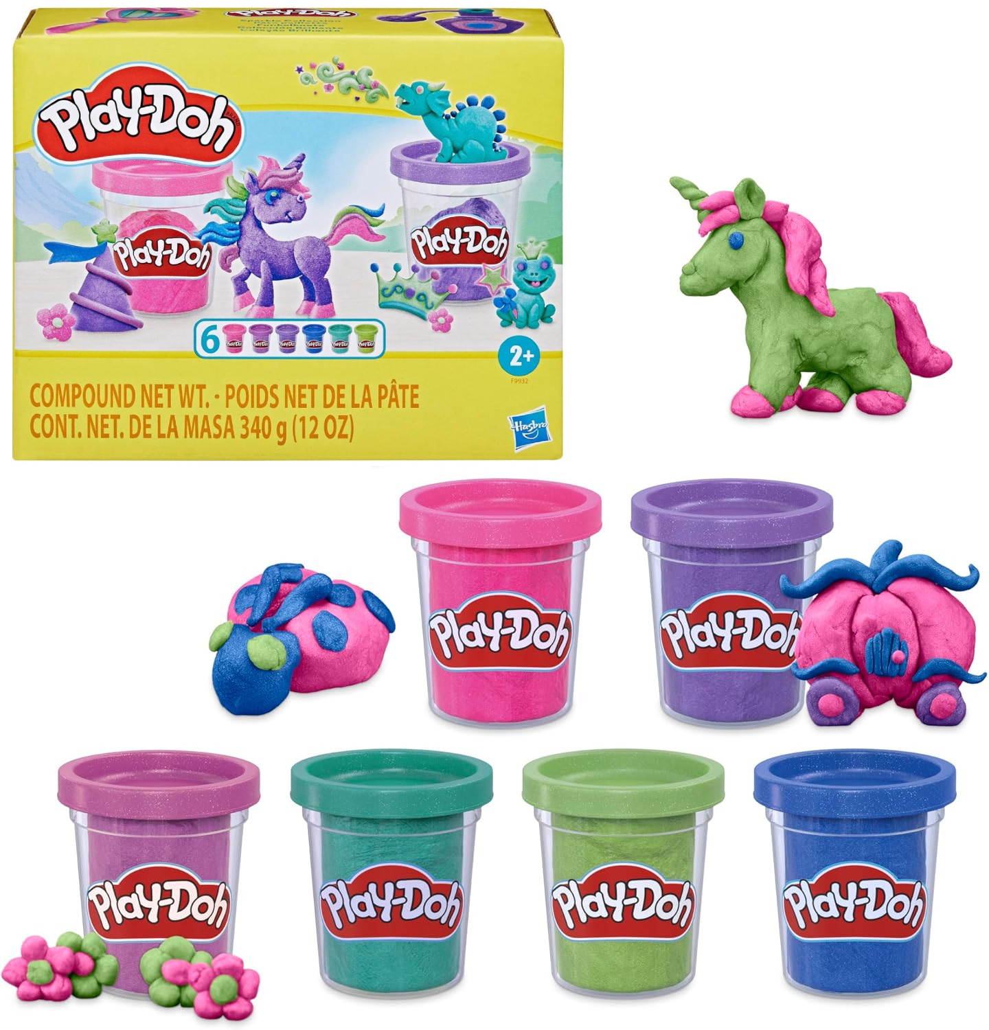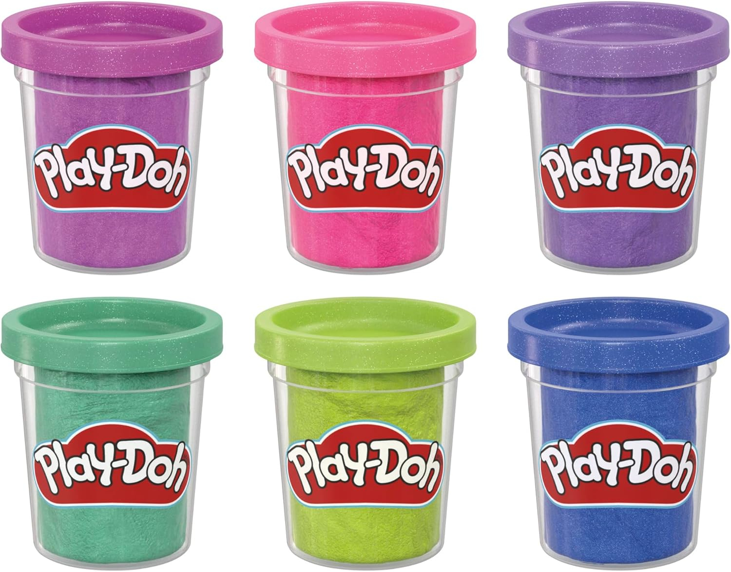 Pozwól dziecięcej wyobraźni lśnić dzięki Kolekcji błyszczącej ciastoliny Play-Doh! Ten sześciopak Play-Doh zawiera metaliczną błyszczącą ciastolinę w kolorach: różowym, niebieskim oraz po 2 odcieniach fioletu i zieleni. Wszystkie barwy pozwolą stworzyć pięknie lśniące dzieła.