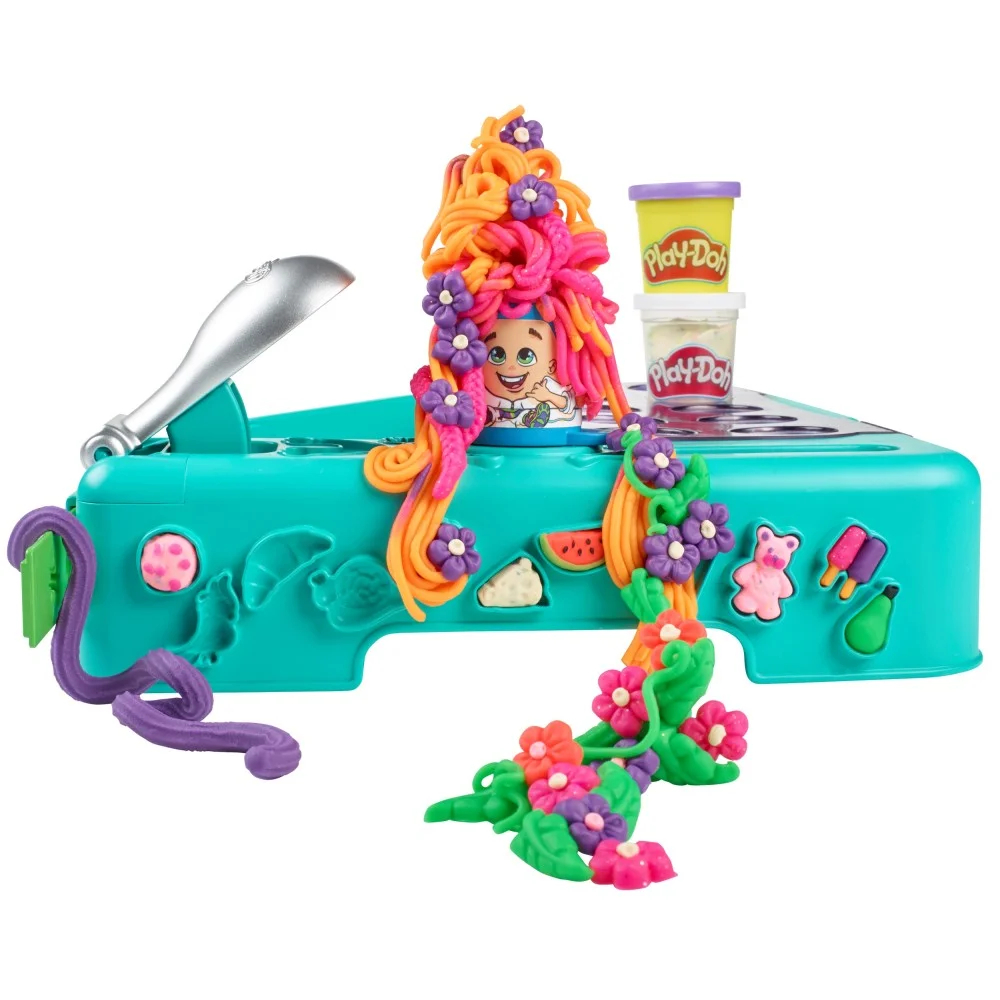 Odkrywaj zwierzęta, figury i kształty dzięki ponad 30 kolorowym akcesoriom! Zestaw posiada różne foremki zwierząt, kształtów i figur! Dodatkowo w zestawie są dwa rodzaje dodatków do wyciskania ciastoliny - jedno akcesorium sprawia, że szalone włosy Play-Doh rosną, podczas gdy do użycia drugiego musimy użyć 1 z 9 rodzajów szablonów do wyciskania. Kolory są dostępne w praktycznych opakowaniach po 56 g, aby odkrywać nowe barwy i eksperymentować z nimi. Dla jeszcze większej zabawy w zestawie znajdziemy 2 tuby ciastoliny z konfetti i brokatem. Zestaw posiada wbudowaną powierzchnię do zabawy, dzięki czemu dzieci mogą bawić się z Play-Doh również w podróży!