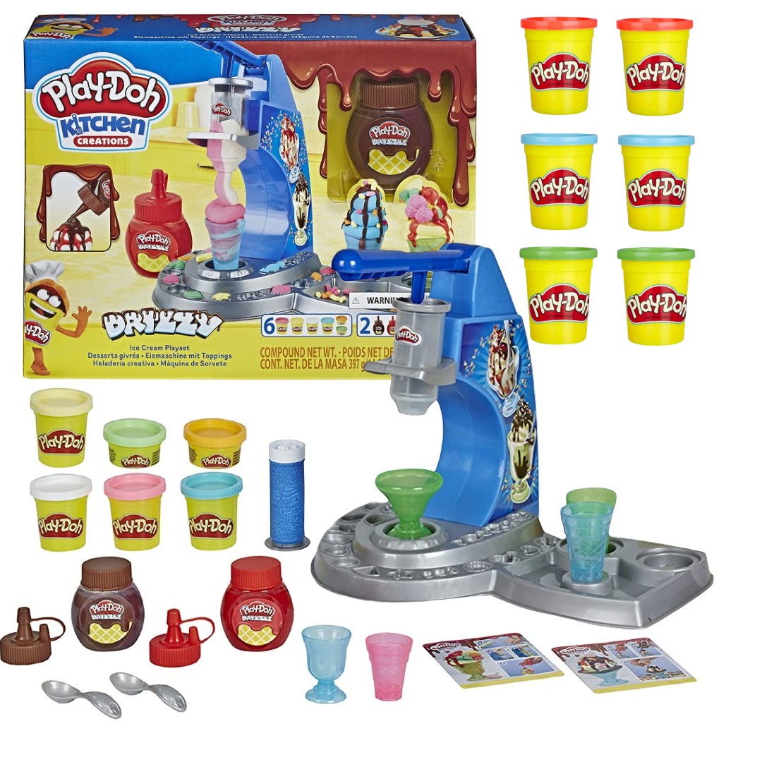 Stwórz własny zestaw deseru lodowego! Może być w polewie lub z posypką, w pucharku lub wafelku - jaki sobie tylko wymarzysz! Lody wyglądają jak prawdziwe dzięki niesamowitej płynnej polewie, która zastyga na ich powierzchni. Użyj klasycznej ciastoliny Play-Doh w maszynce do lodów, a potem pokryj je polewą. Polewę możesz zdjąć, kiedy tylko chcesz i zacząć zabawę od nowa!