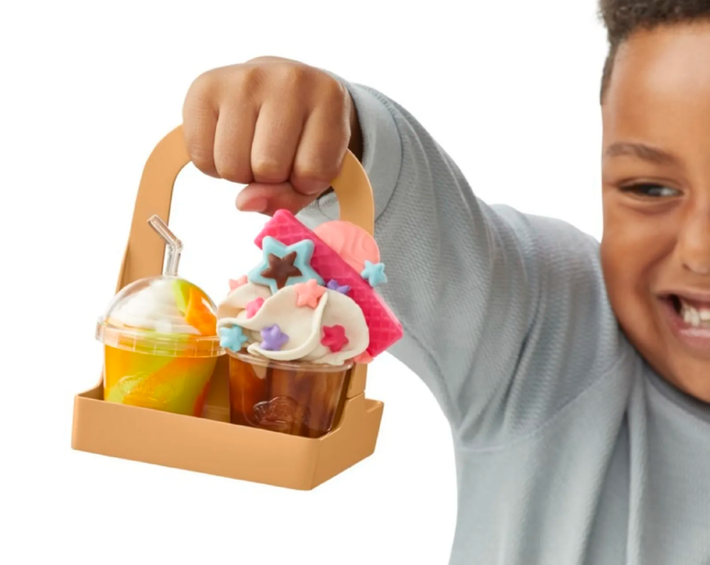 Ciastolina PLAY-DOH Super Kolorowa Kawiarnia to kreatywny zestaw, który pozwala dzieciom wcielić się w rolę baristy i cukiernika. Dzięki zabawkowemu ekspresowi do kawy maluchy mogą tworzyć kolorowe napoje z masy plastycznej – kawy, herbaty, koktajle i fantazyjne frappe. Zabawa w kawiarnię rozwija wyobraźnię, zdolności manualne oraz zachęca do odgrywania ról w przyjaznej, kreatywnej atmosferze.