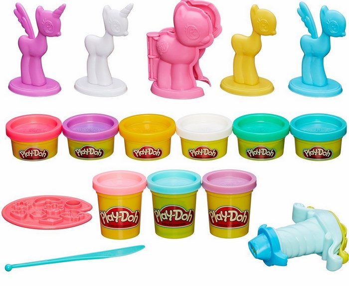 To kucykowe szaleństwo! Teraz możesz stworzyć kilka tęczowych kucyków. Unikalne narzędzia umożliwiają wyciskanie, odbijanie i modelowanie w dowolny sposób – tak, by stworzyć tego wymarzonego! Ulep ciastolinowy świat MLP w ośmiu tęczowych kolorach!