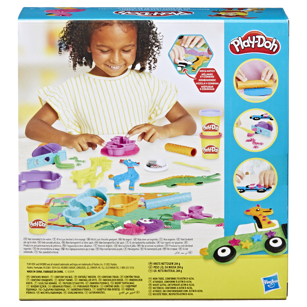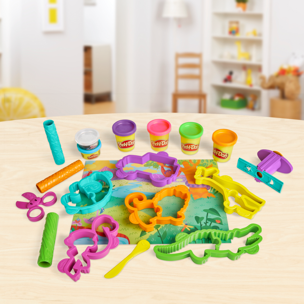 Przenieś dziecko w sam środek dzikiej przygody! Dzięki foremkom dzieci mogą formować imponujące figurki – od żyrafy, przez leniwca, aż po lwa. Foremki umożliwiają mieszanie przednich i tylnych części zwierząt, co daje nieograniczone możliwości twórcze. Gotowe dzieła można dekorować za pomocą teksturowanych wałków, wytłaczarki. Całość uzupełnia mata do zabawy, która inspiruje do odgrywania dżunglowych przygód.