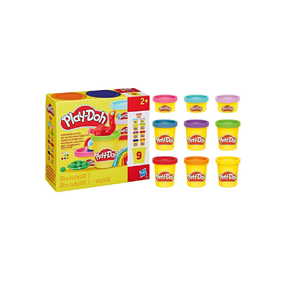 Gotowi na eksplozję kolorów? Zestaw Play-doh to aż 9 tub pełnych kolorowej frajdy - razem 425g miękkiej, plastycznej masy, która daje nieskończone możliwości tworzenia! Ugniataj, wałkuj, mieszaj kolory i twórz wszystko, co tylko przyjdzie Ci do głowy – od pysznych ciasteczek i kolorowych zwierzaków po bajkowe postacie.