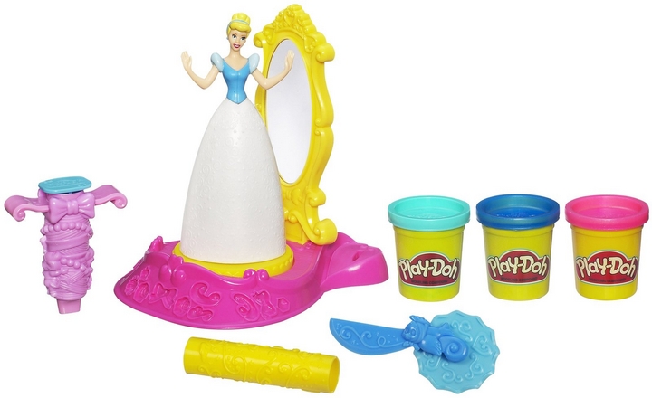 Kopciuszek wybiera sie na wymarzony bal. Kto pomoże ślicznej księżniczce i wyczaruje dla niej najpiękniejszą suknię? Teraz, dzięki zestawowi Play-doh, wszystkie dziewczynki mogą zamienić się w Dobre Wróżki i tworzyć wiele fantastycznych kreacji i dodatków do sukni Kopciuszka. Zabawa z ciastoliną Play-Doh pobudza wyobraźnię, rozwija sprawność manualną oraz pomaga dzieciom w nauce rozróżniania kolorów.